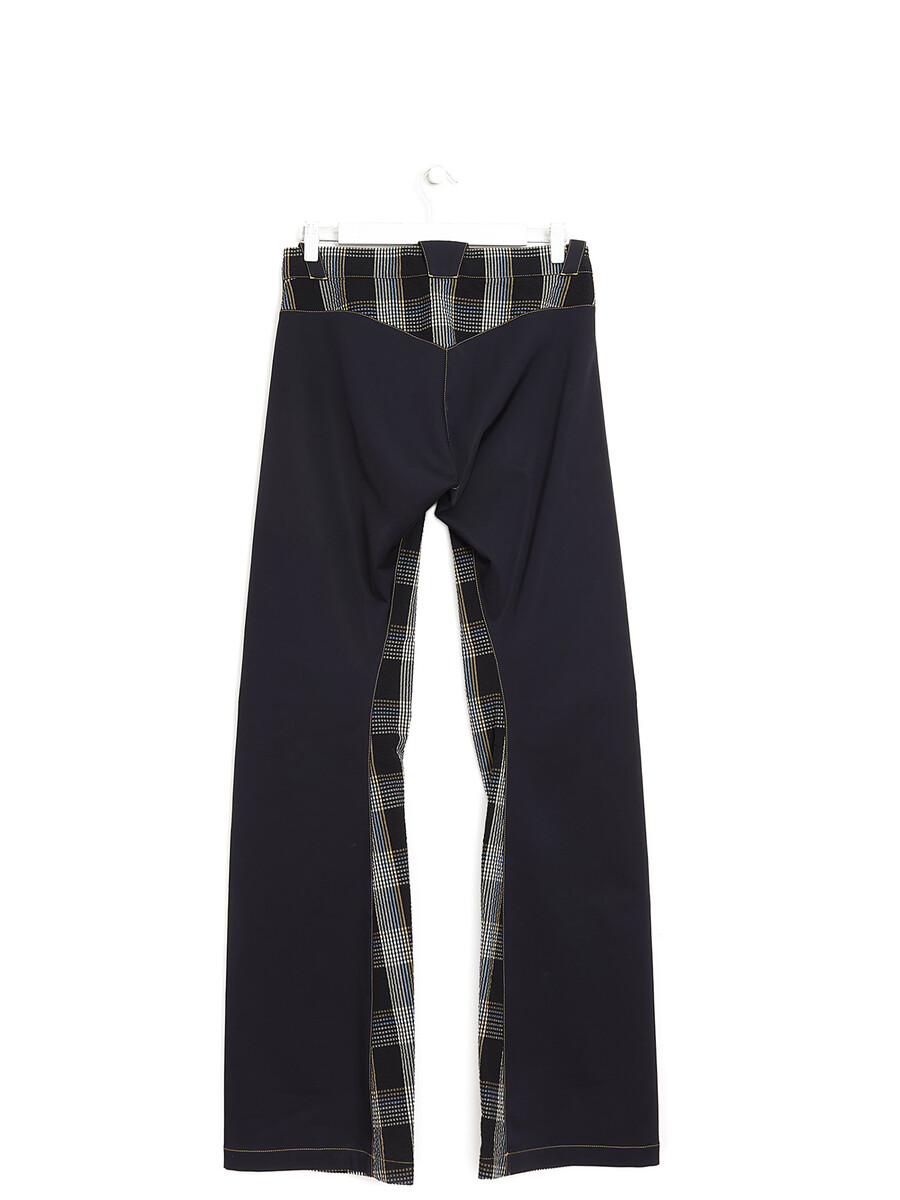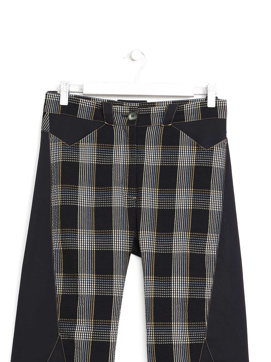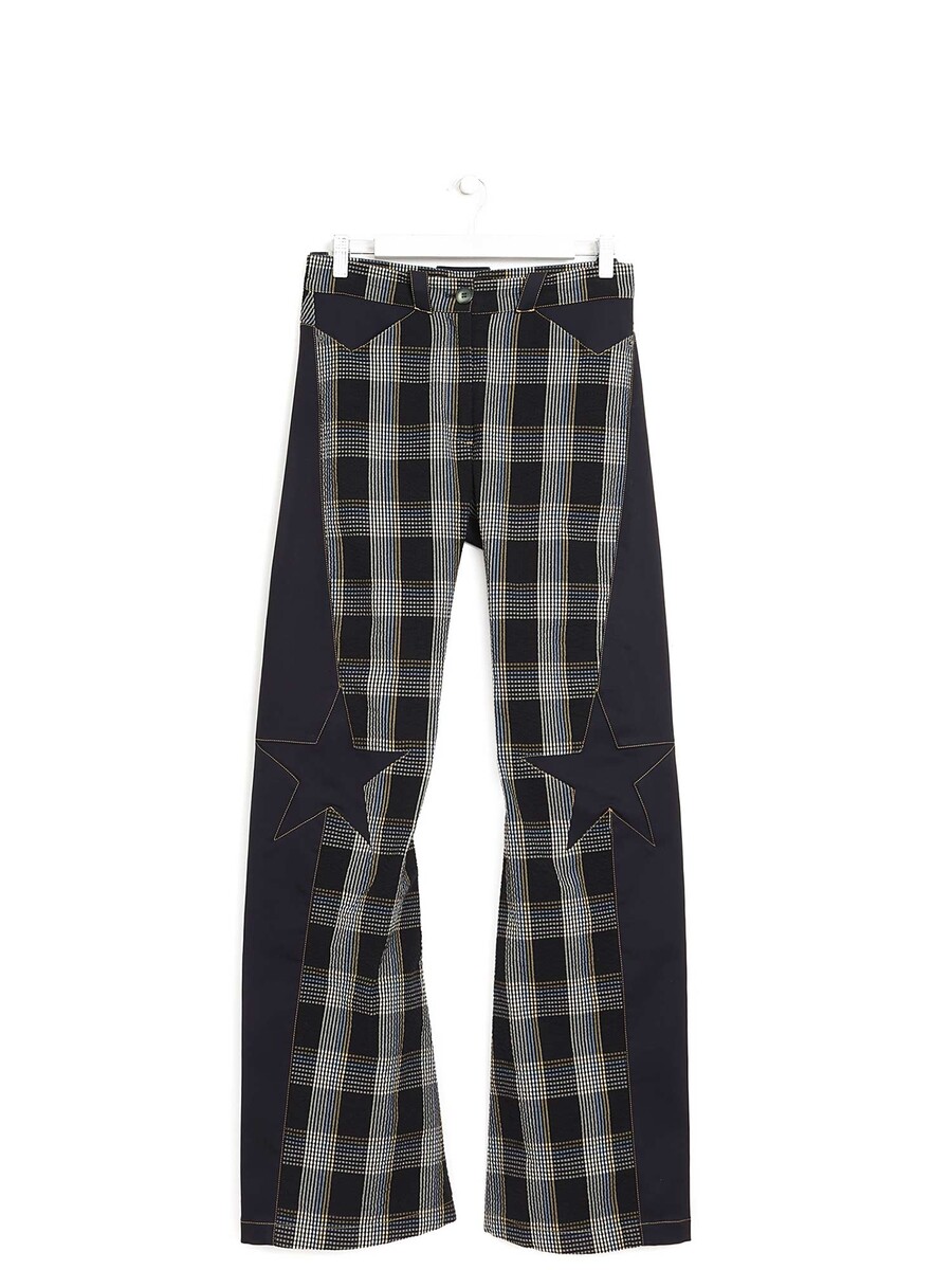 Check pattern cotton trousers in grey and black featuring unique star cutouts at knees.