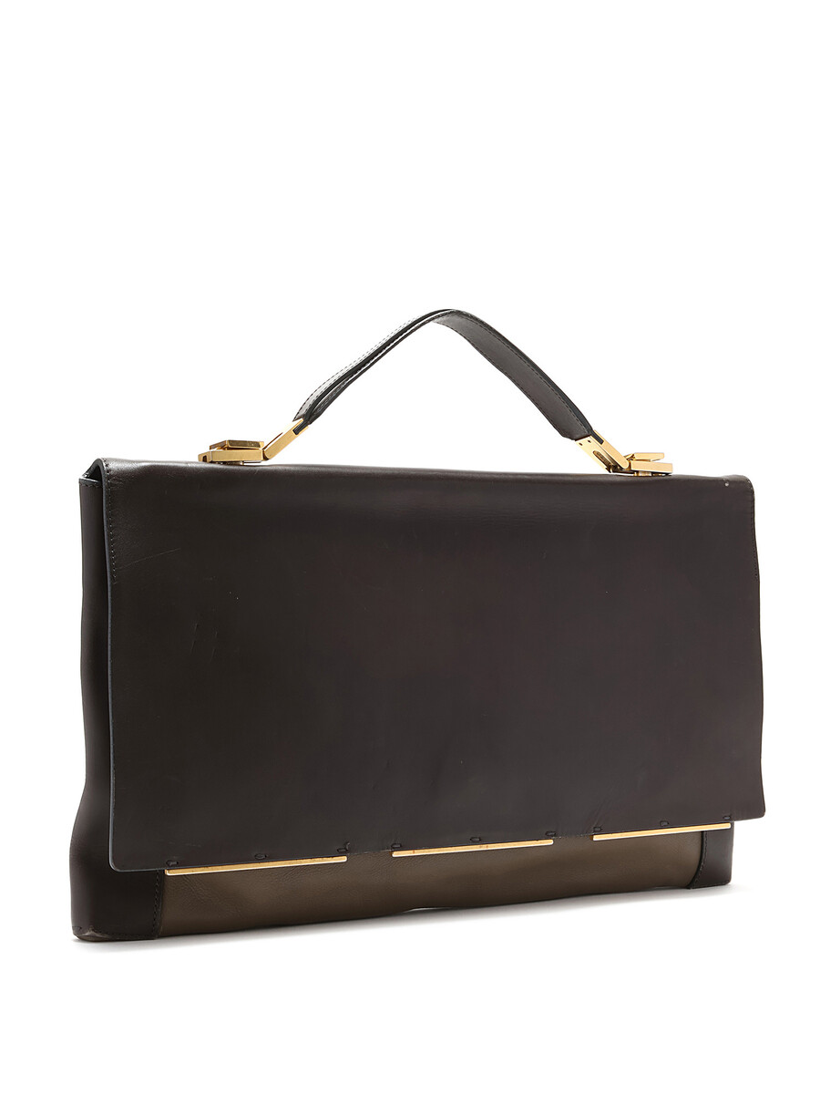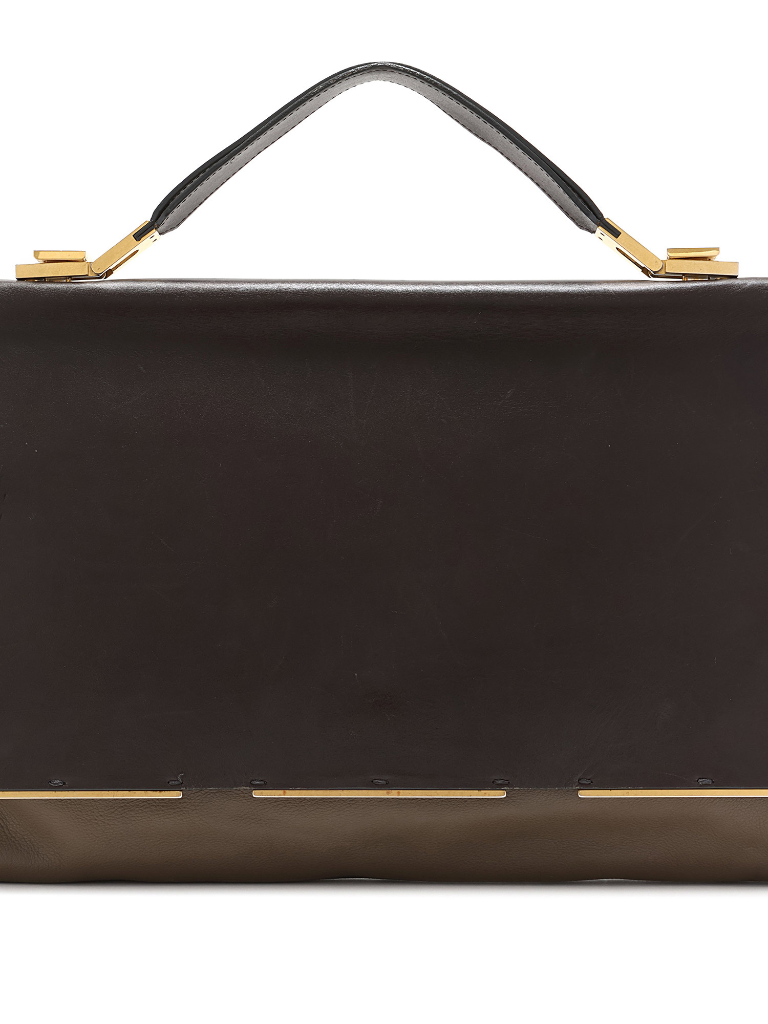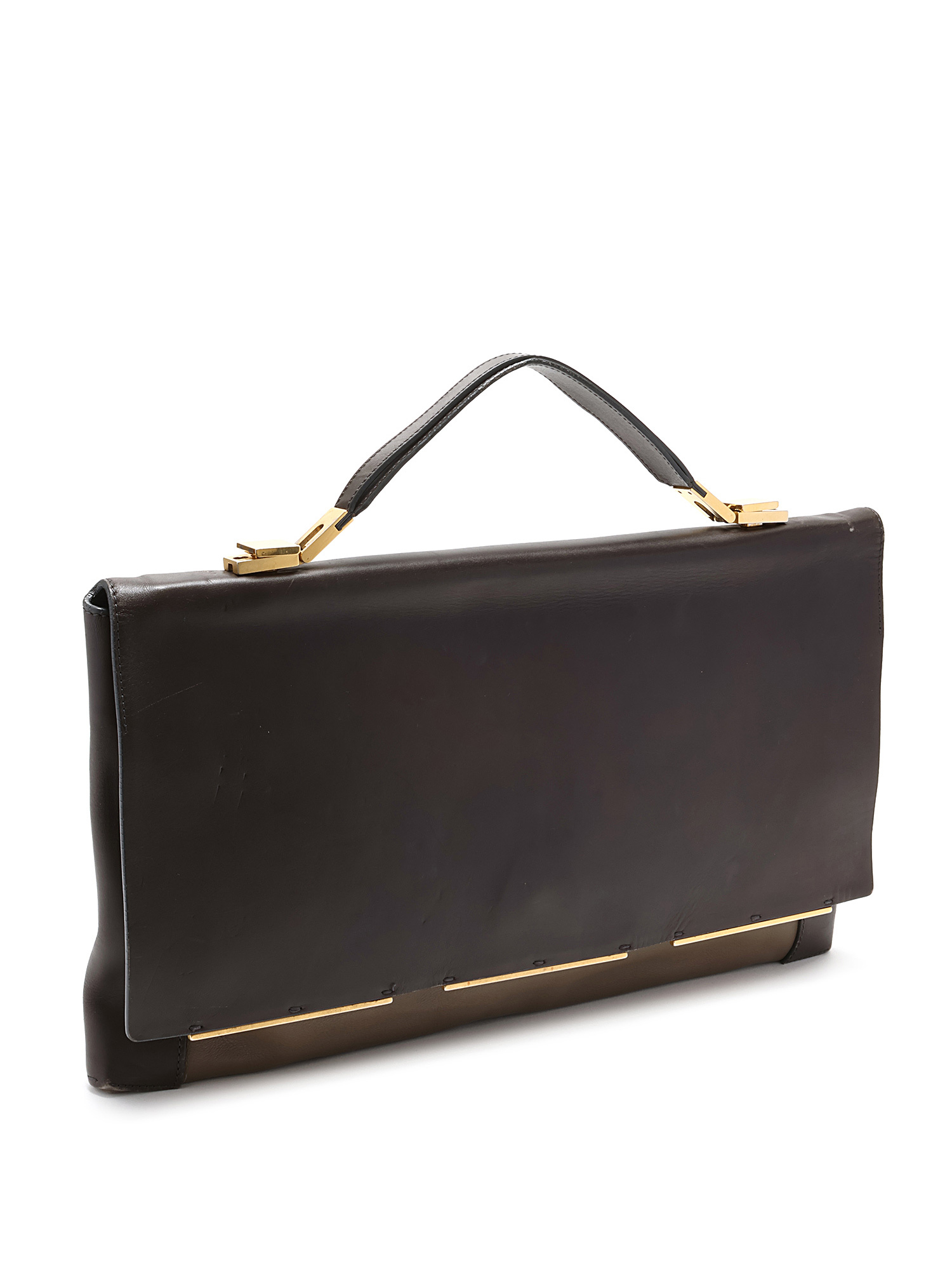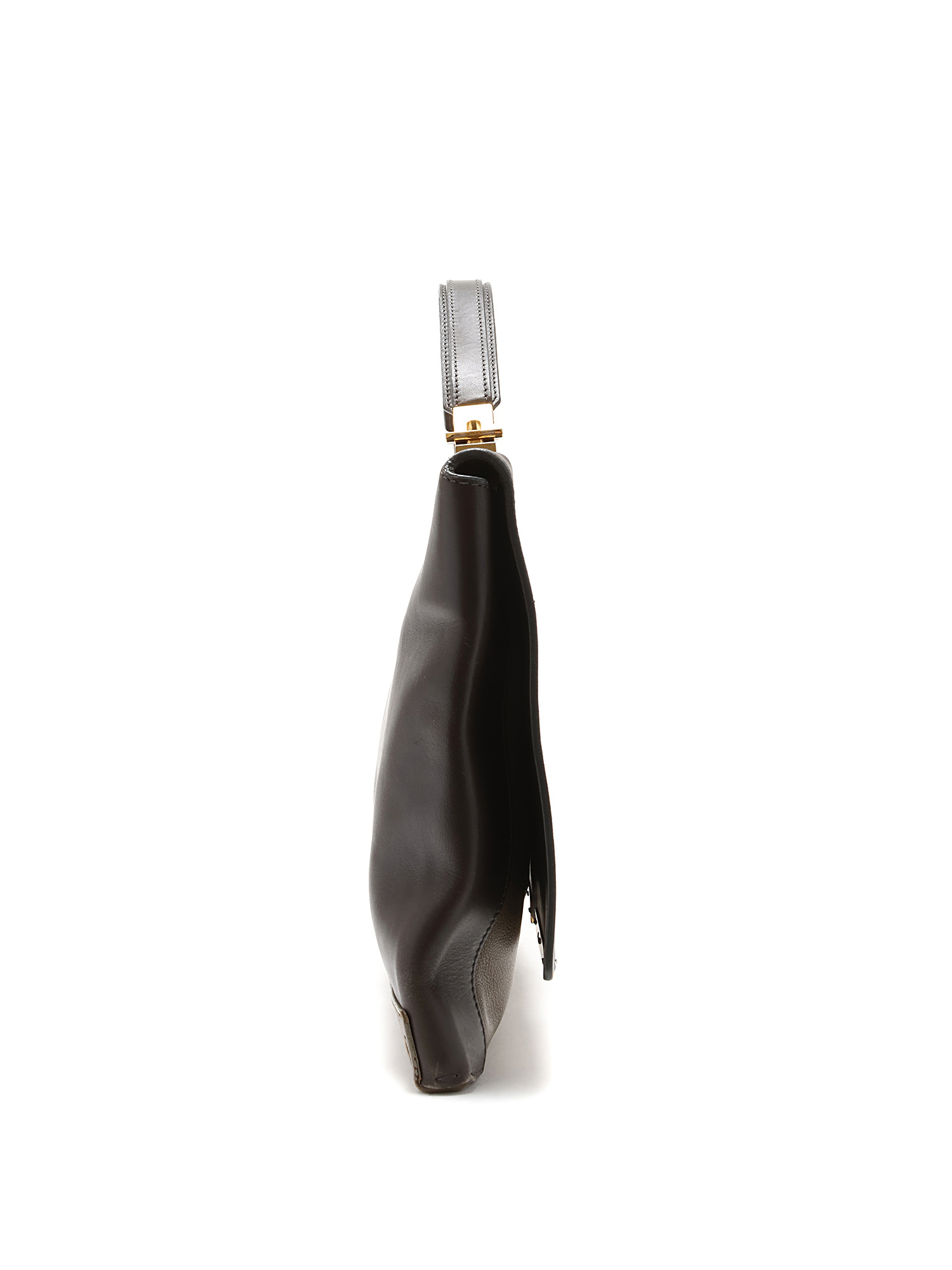 Smooth leather bag in dark brown with contrasting edges. Gold-tone hardware.