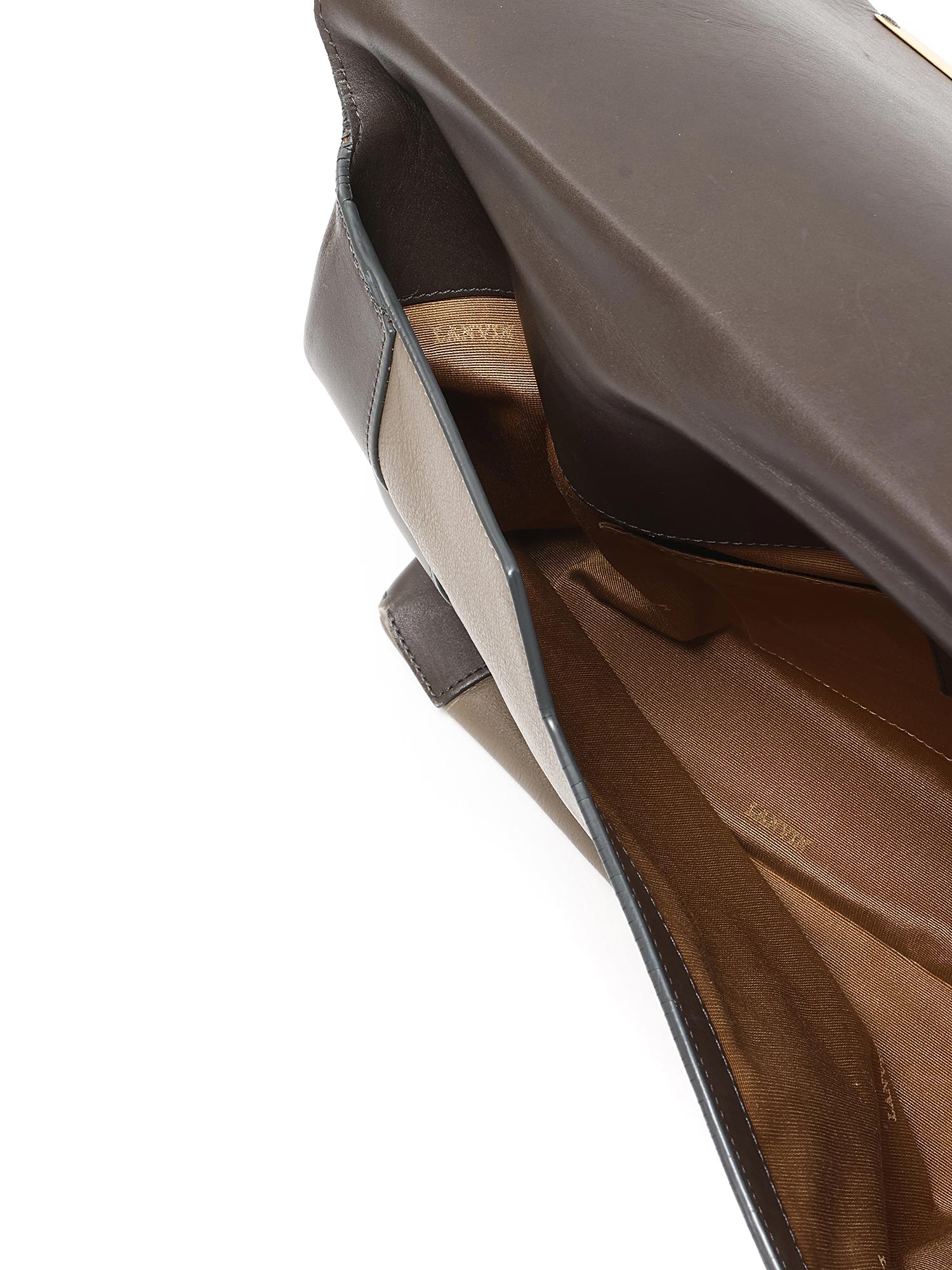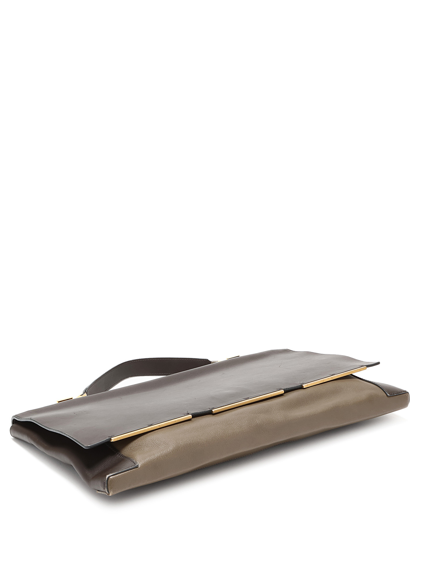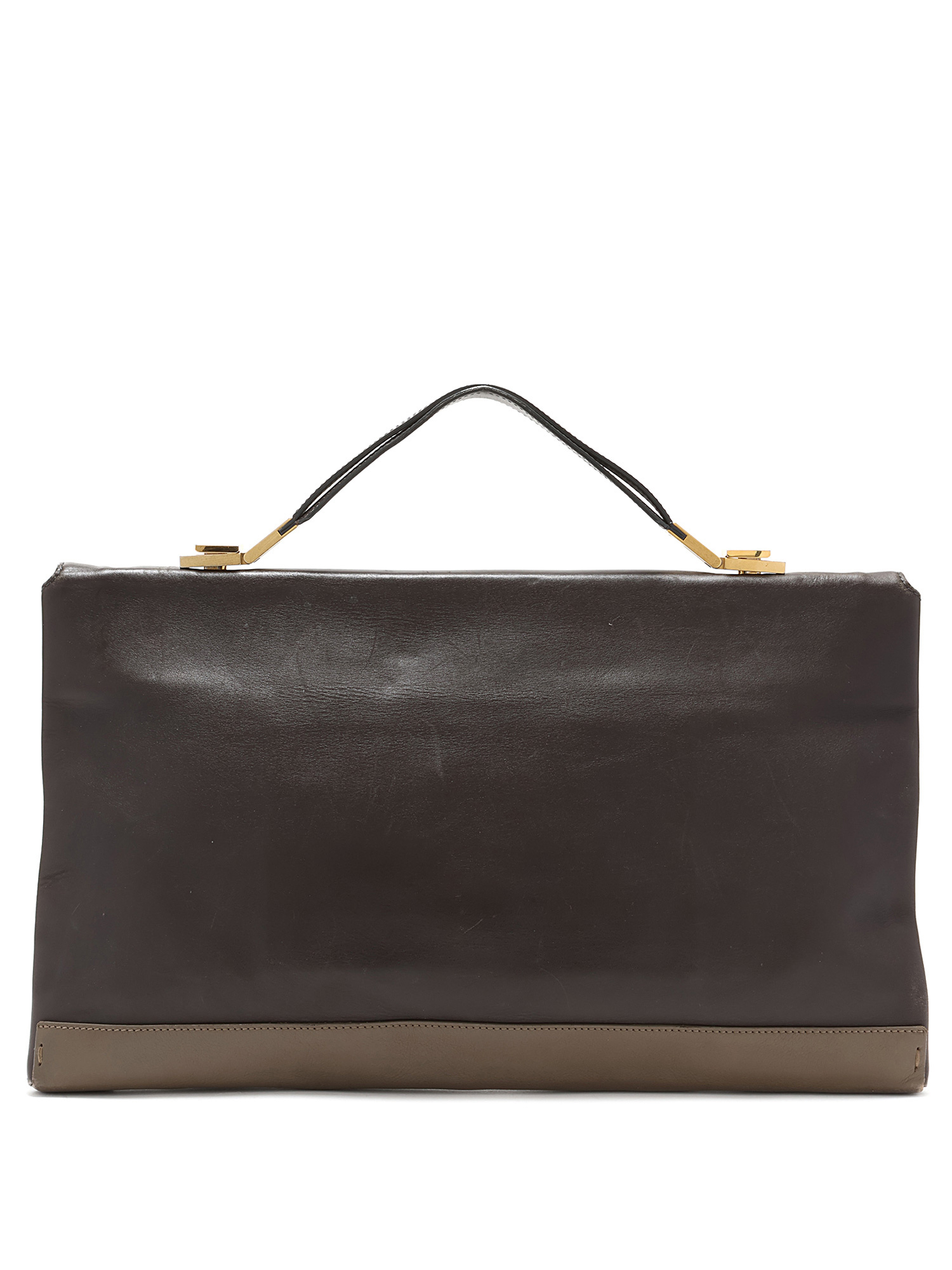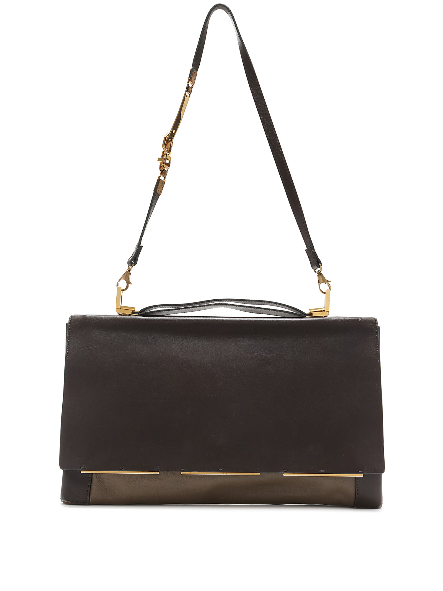 Smooth leather bag in dark brown with contrasting edges. Gold-tone hardware.