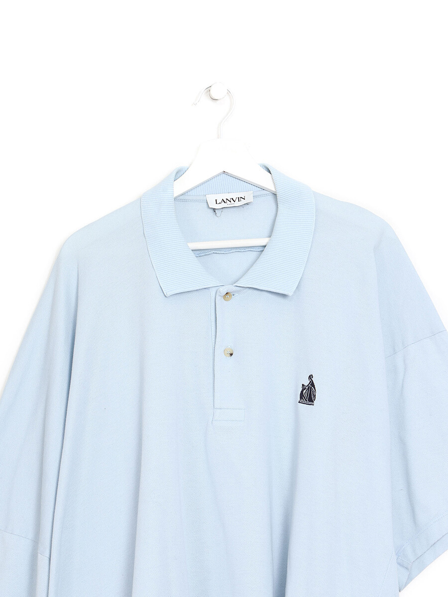 Asymmetric short-sleeve polo shirt in blue. Classic collar. Two-button placket.