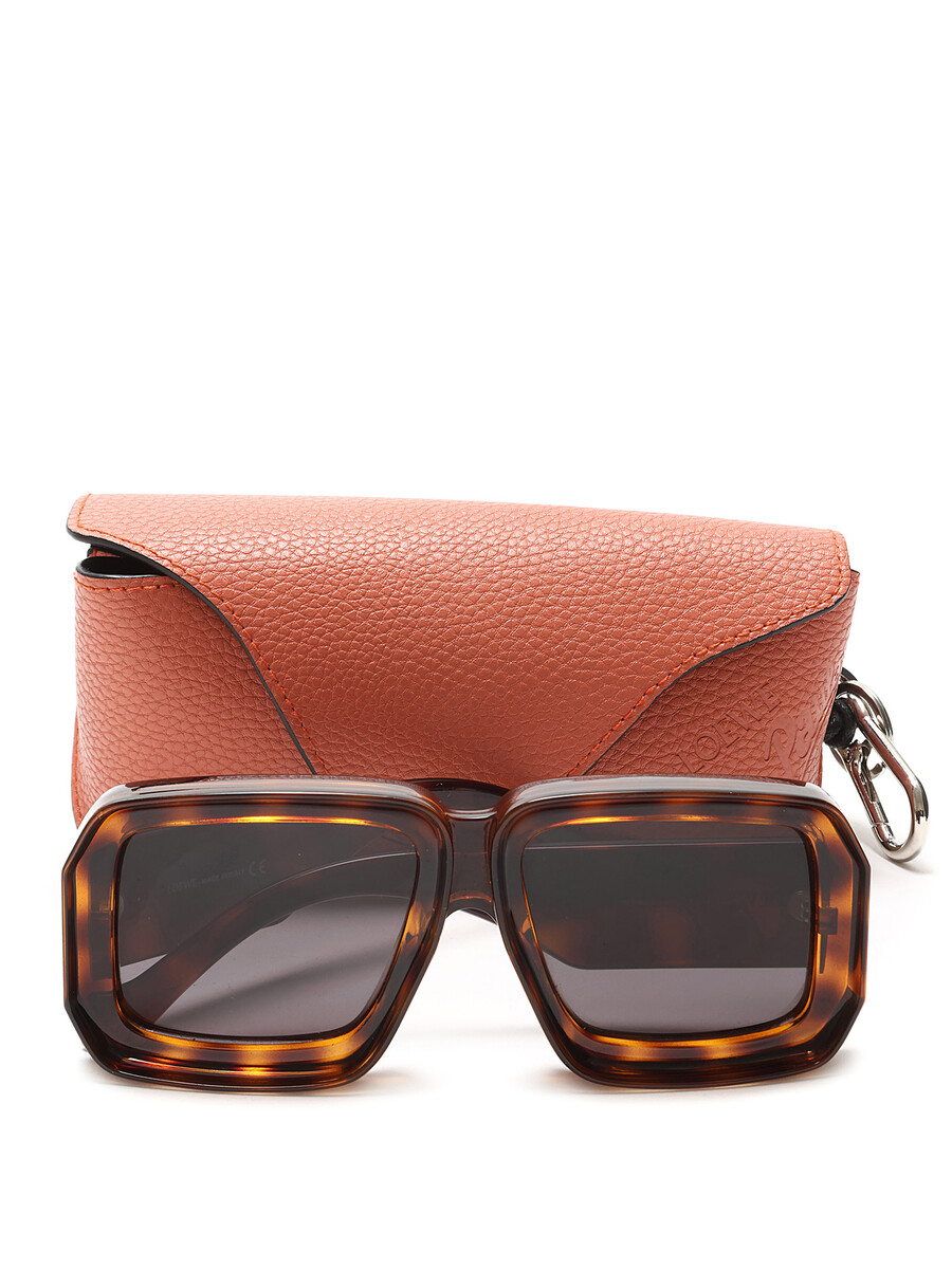 Square acetate sunglasses with a tortoiseshell motif in black and brown. Features logo detail at temples. Comes with original case.