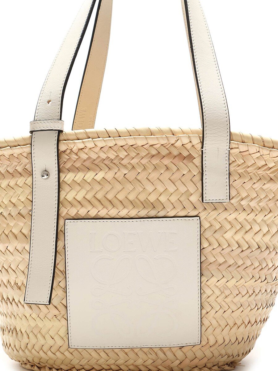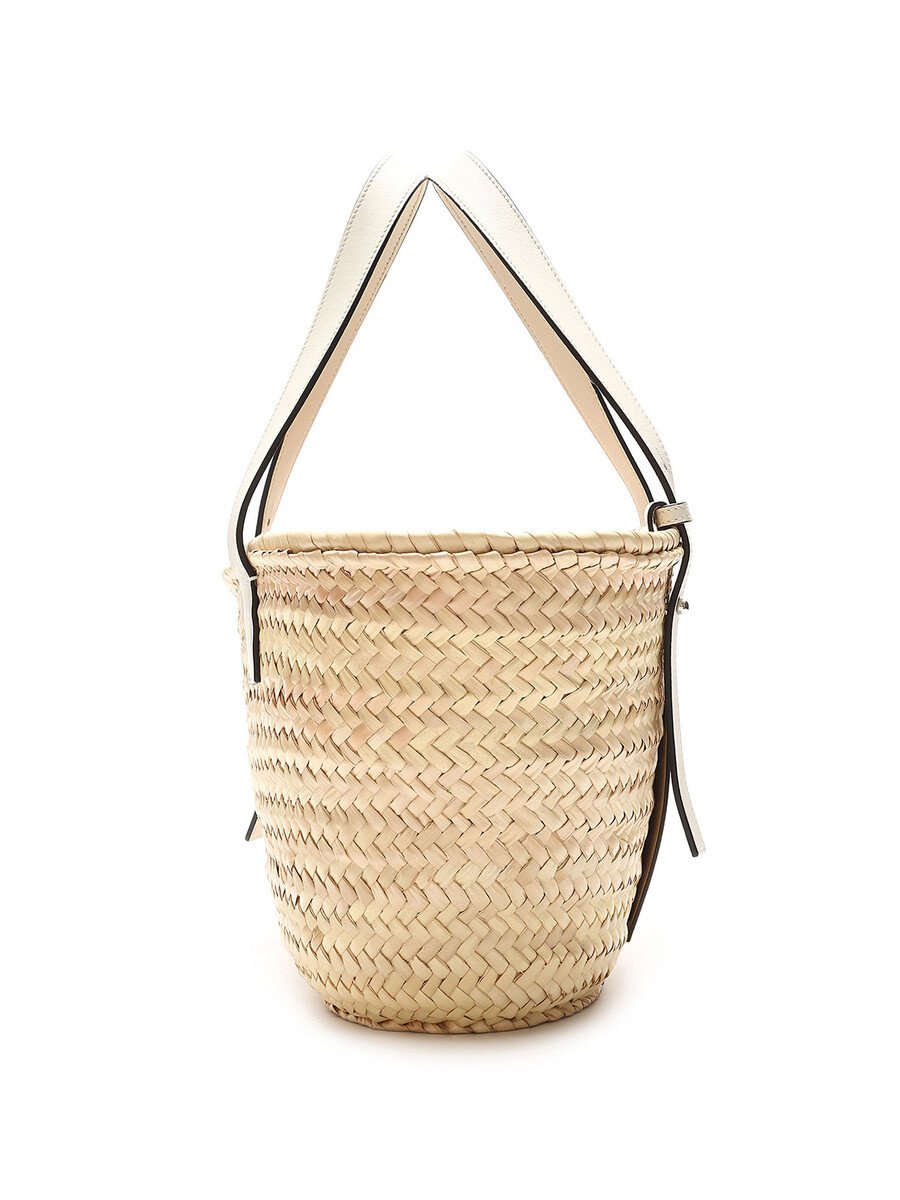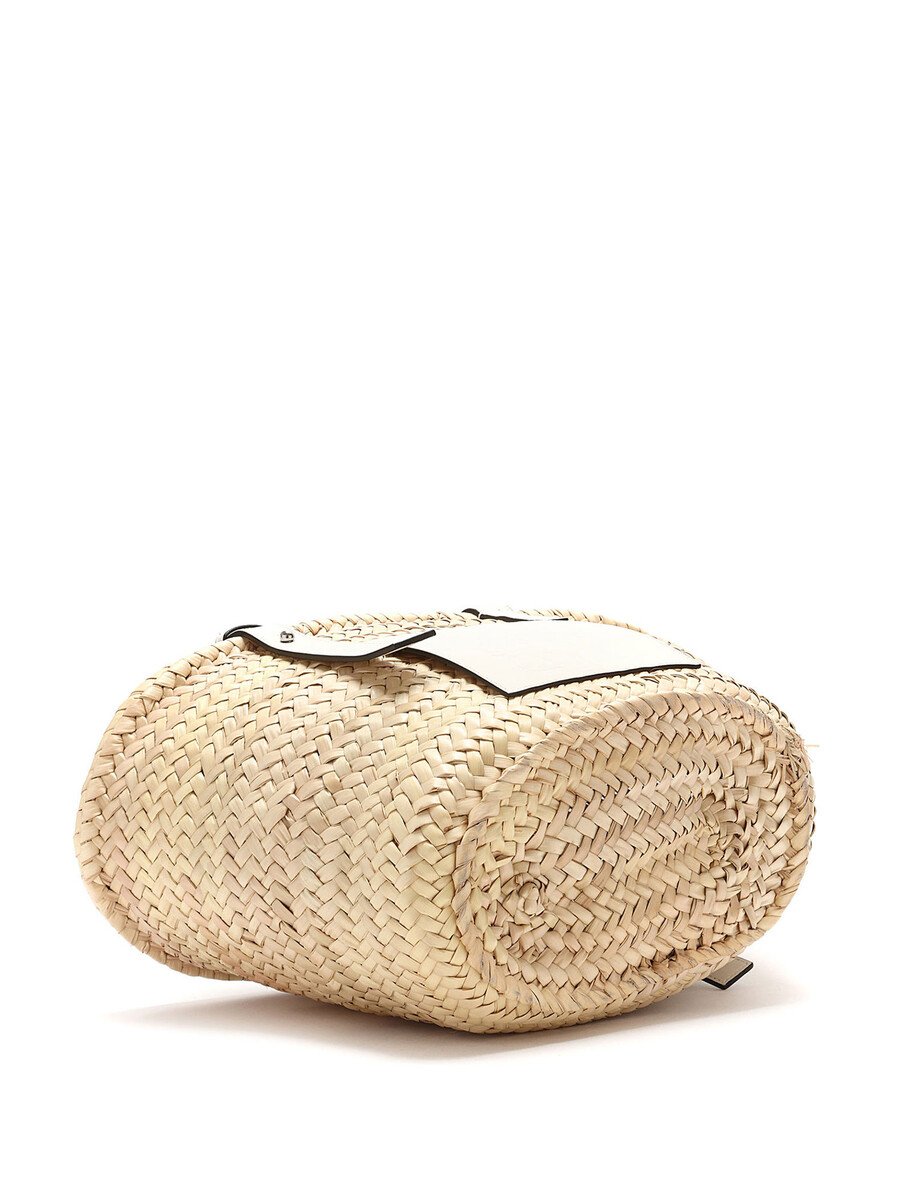 Model: Small Palm Leaf & White Leather Basket Bag