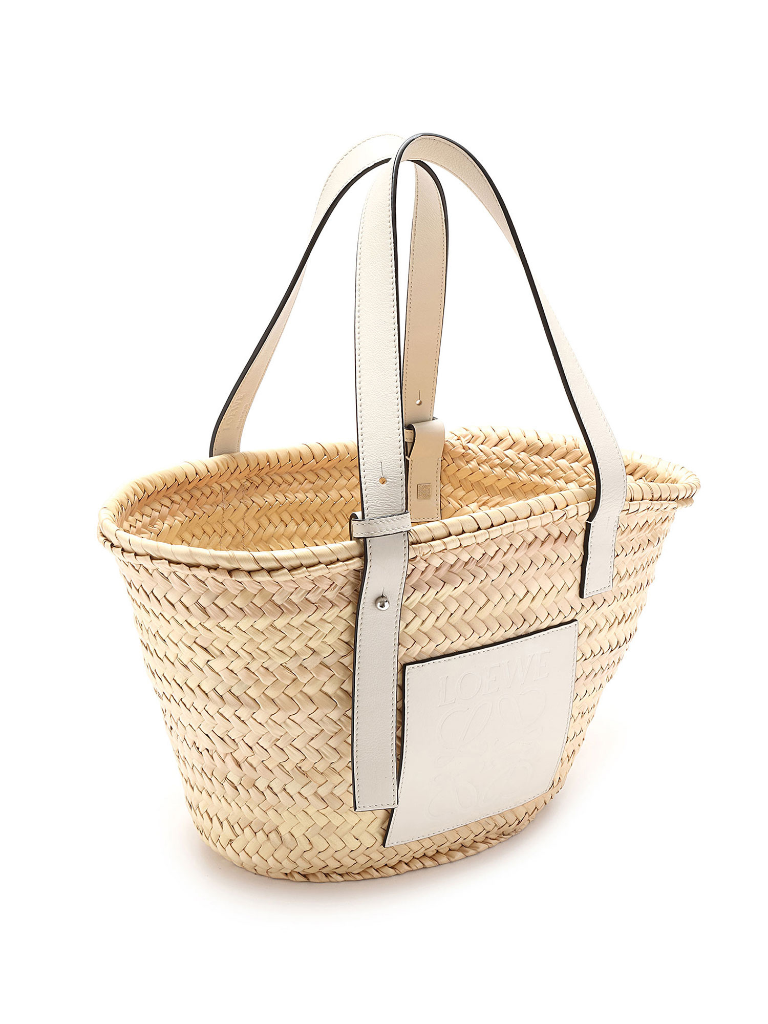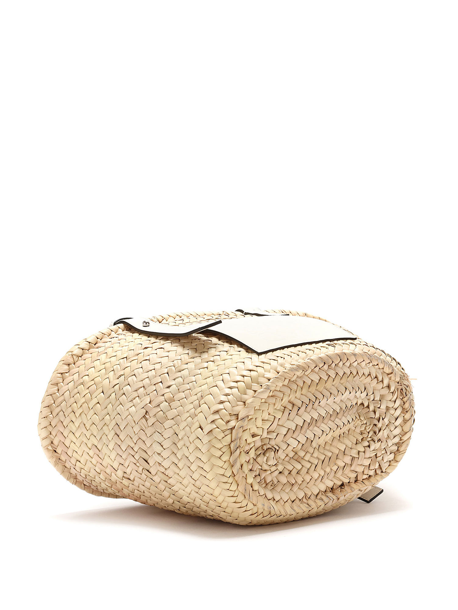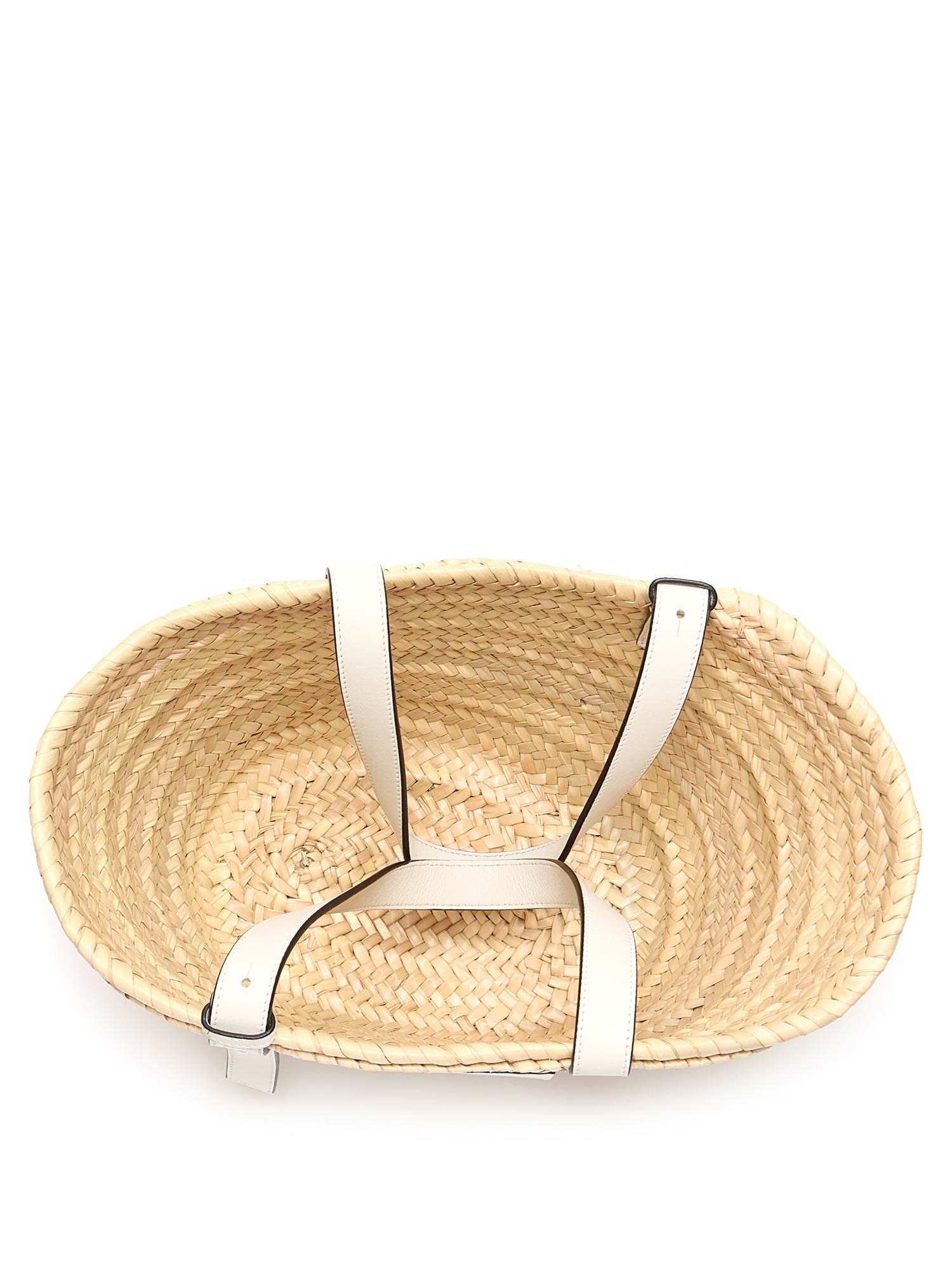 Model: Small Palm Leaf & White Leather Basket Bag