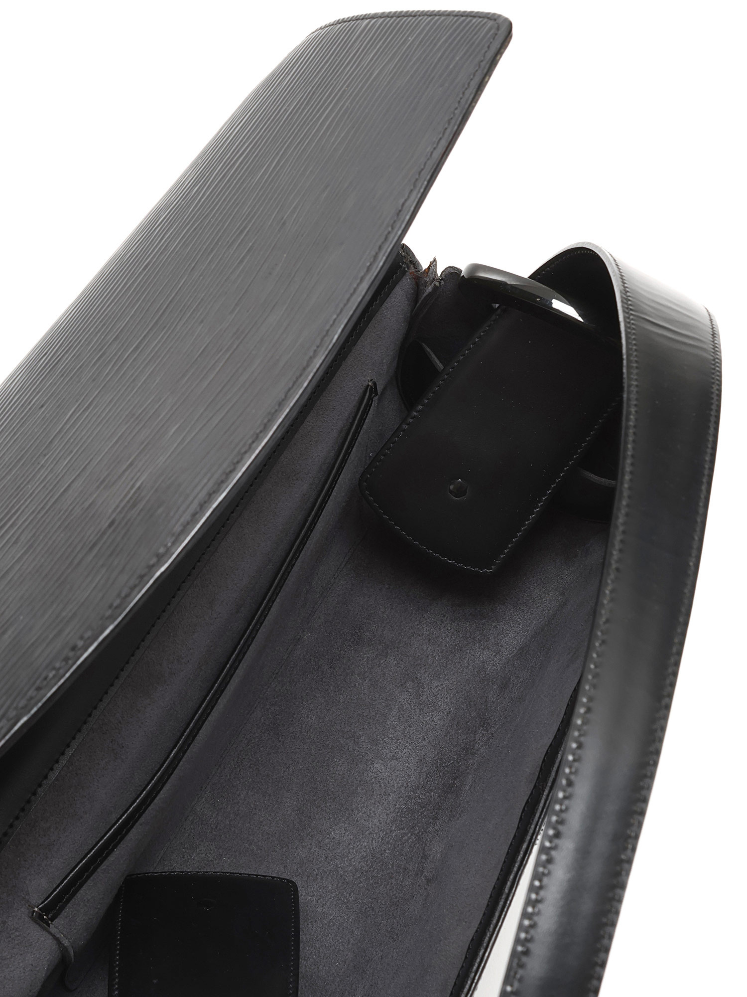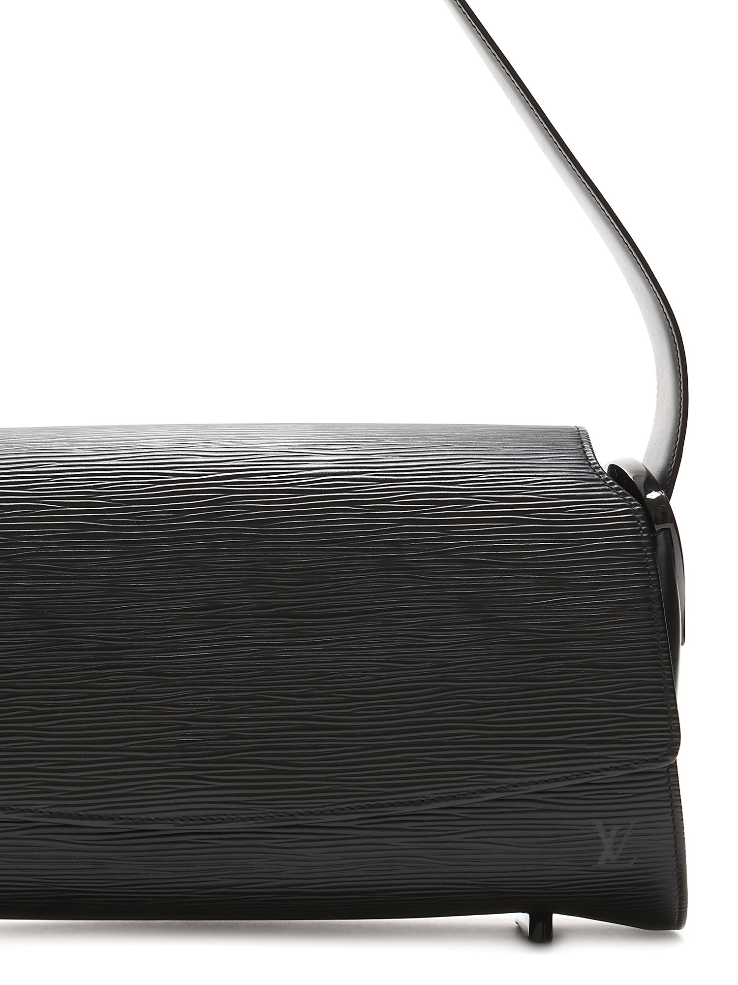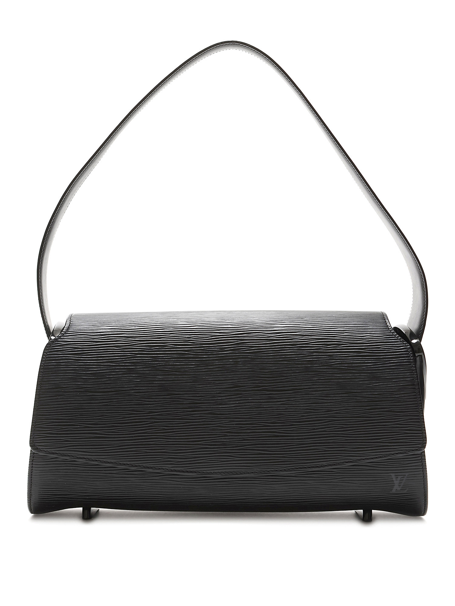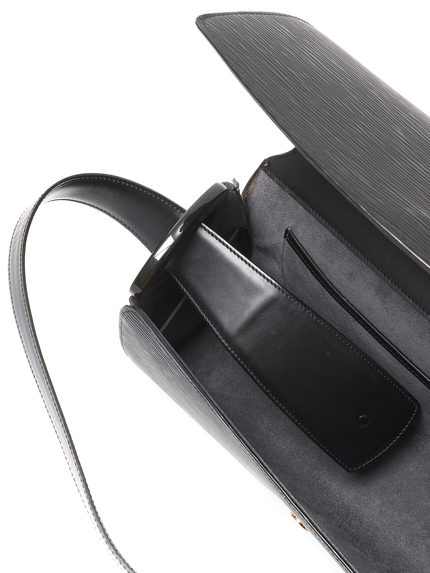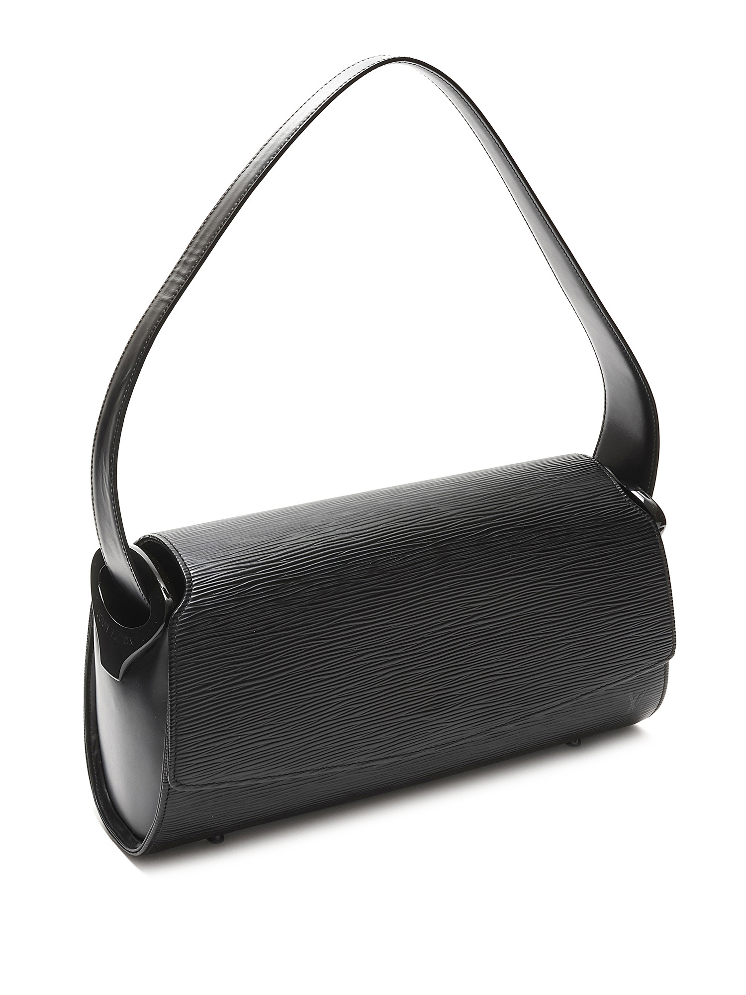 Structured Epi leather shoulder bag in black. Single leather shoulder strap. Gold-tone hardware.