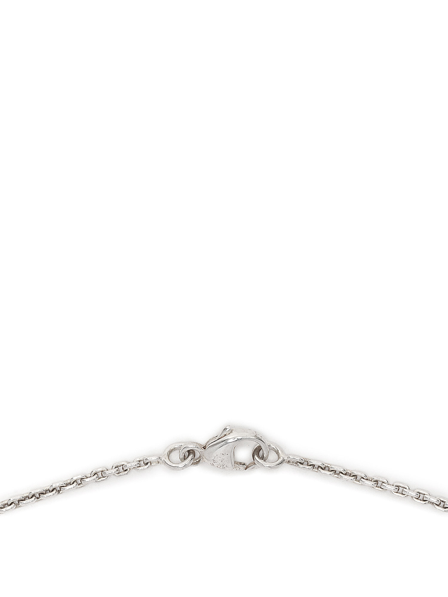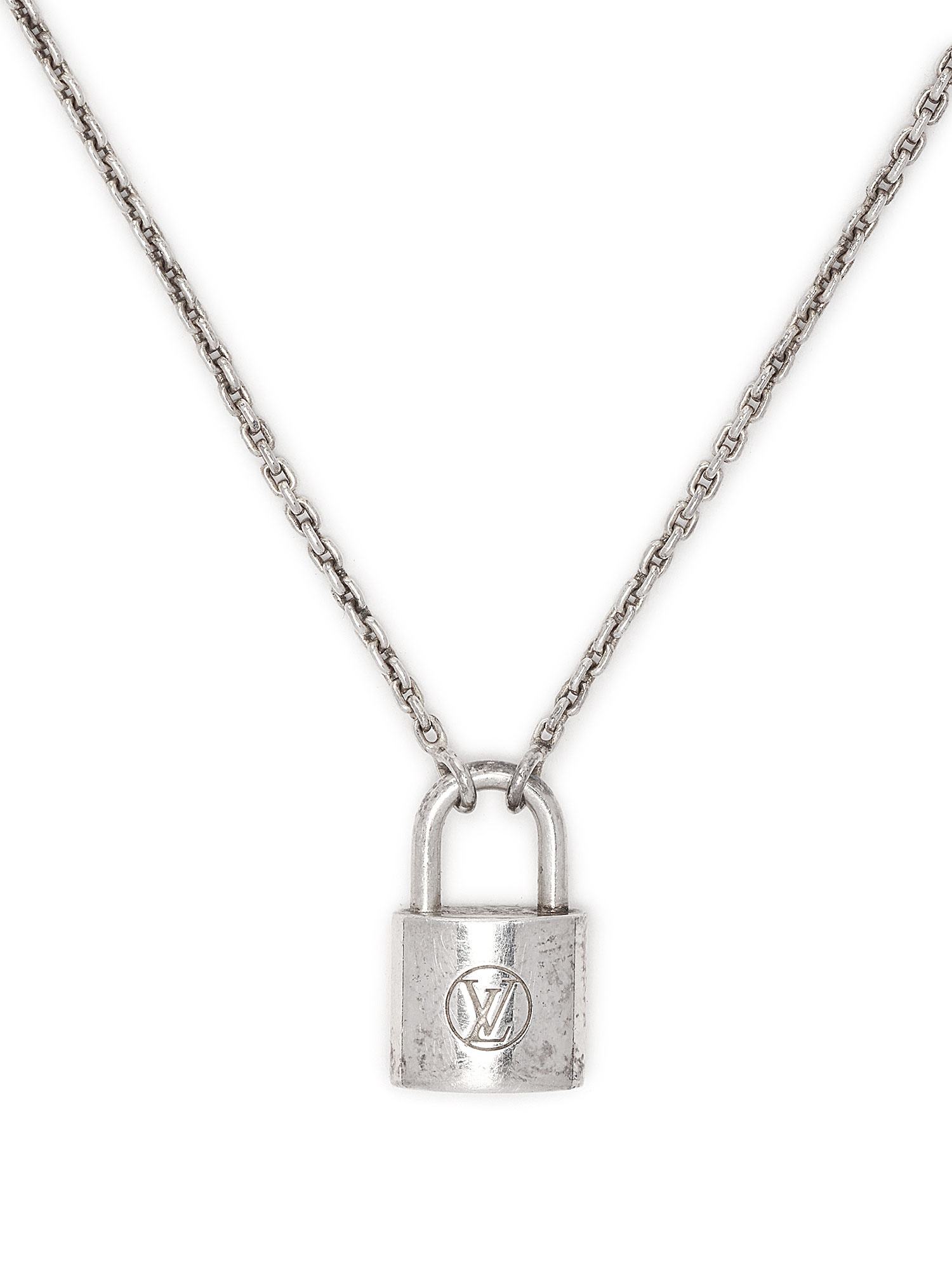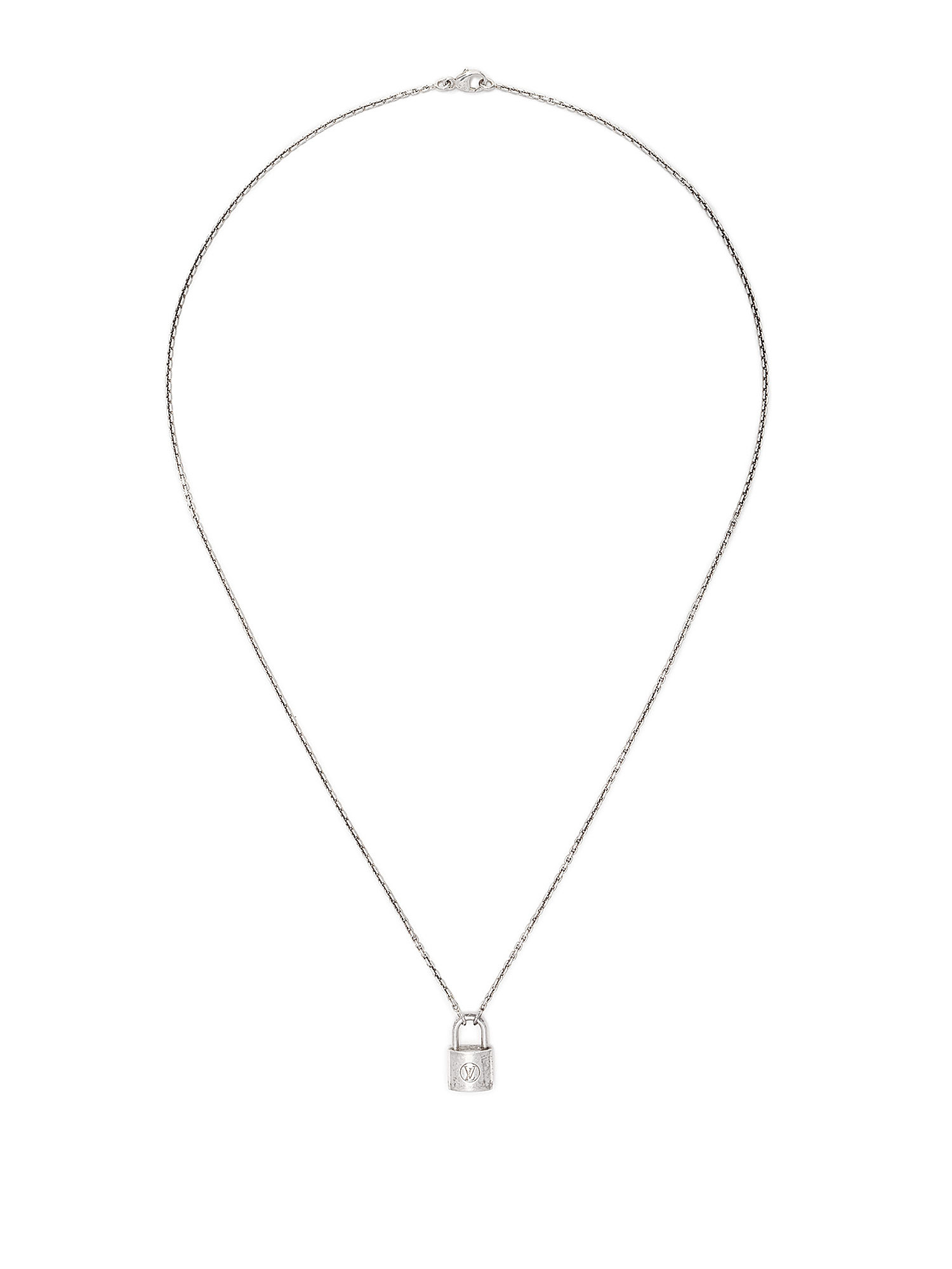 Sterling silver necklace with padlock pendant. Features a classic chain and lobster clasp closure.