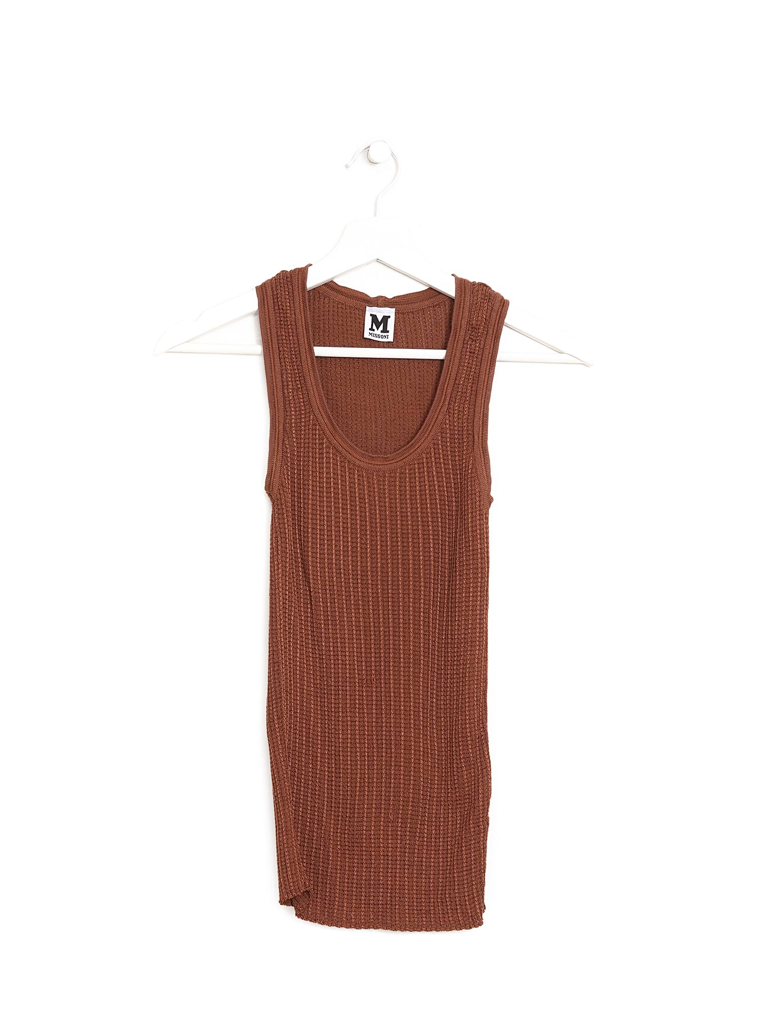 Sleeveless knitted tank top in brown. Soft and light texture.
