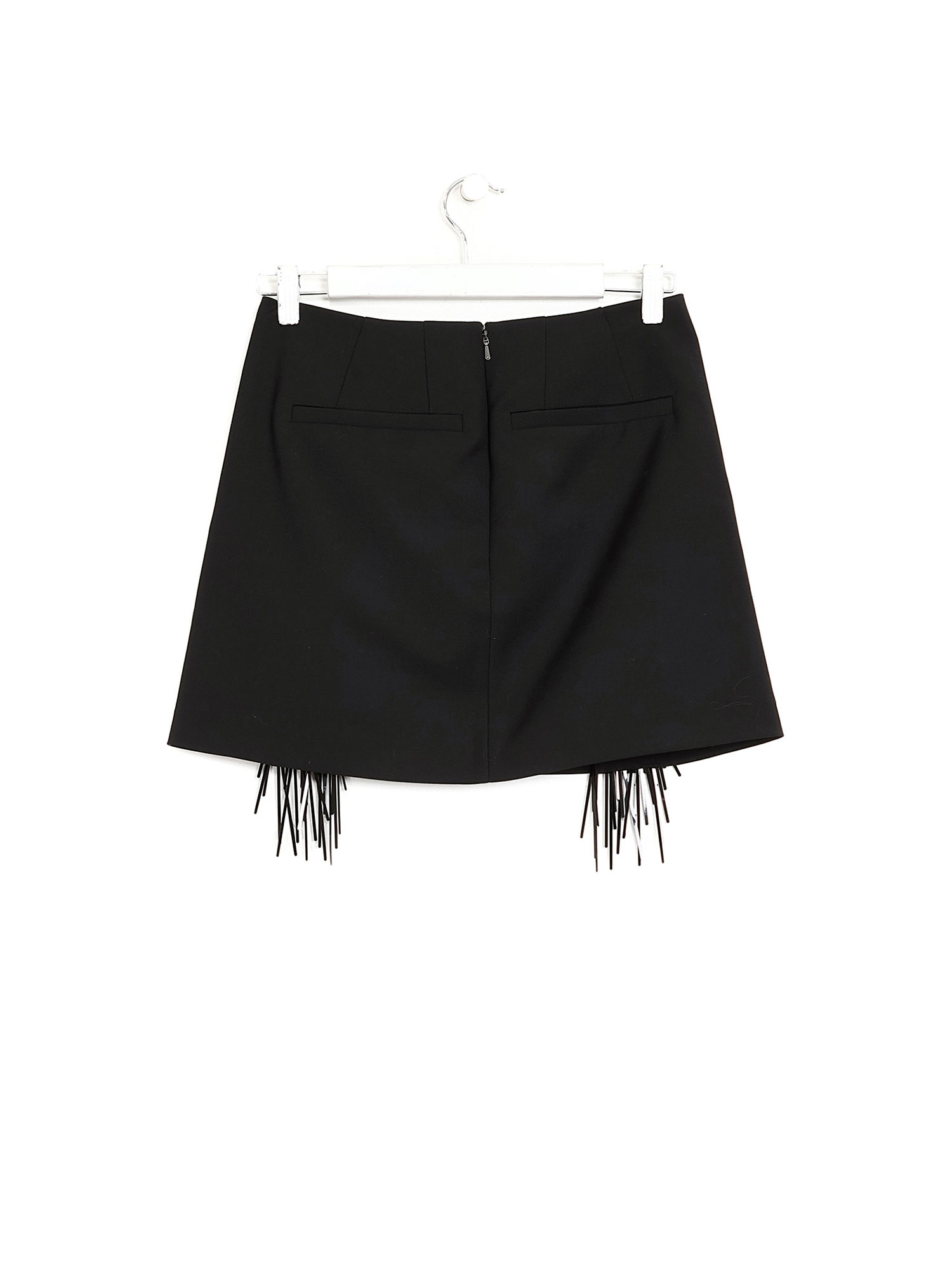 Mini skirt with shimmering sequin embellishments in black. Back centre zip closure. Two back welt pockets for a polished finish.