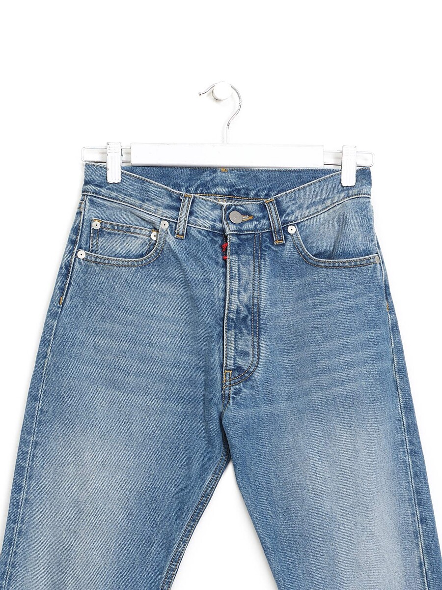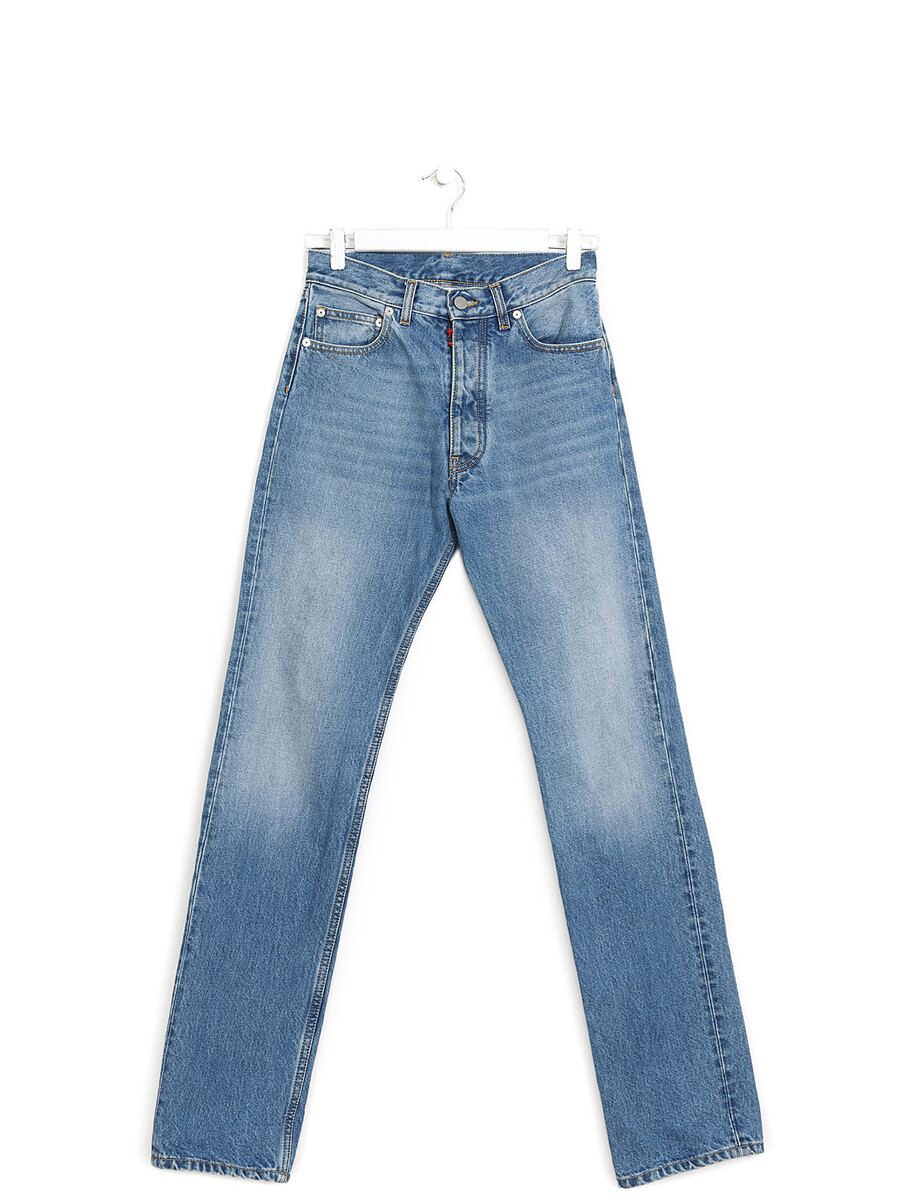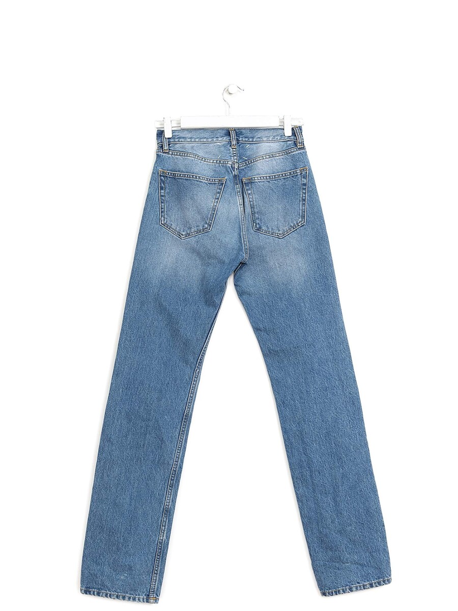 Straight fit denim jeans in blue. Classic five-pocket design. Button and zipper front closure, belt loops.