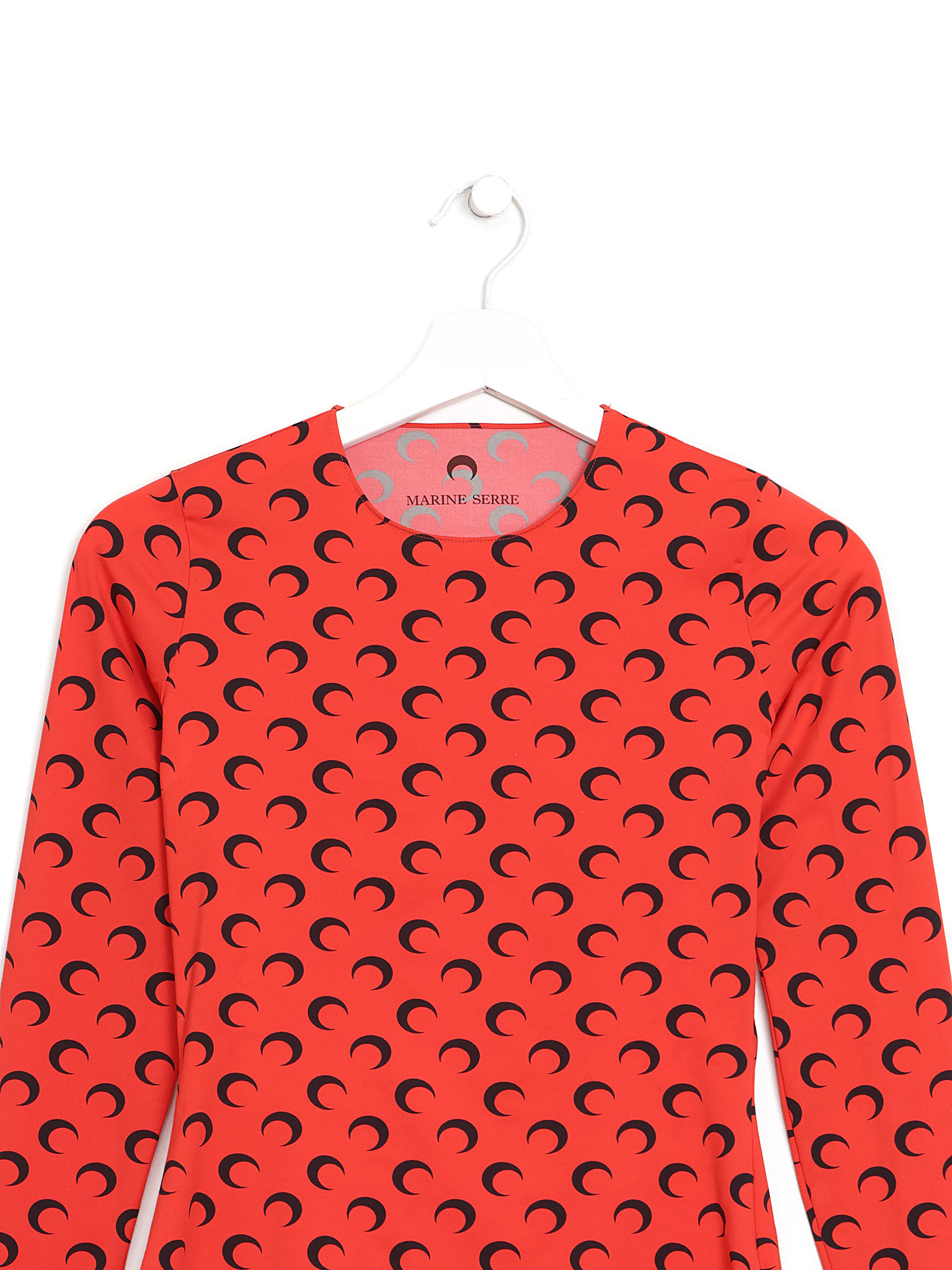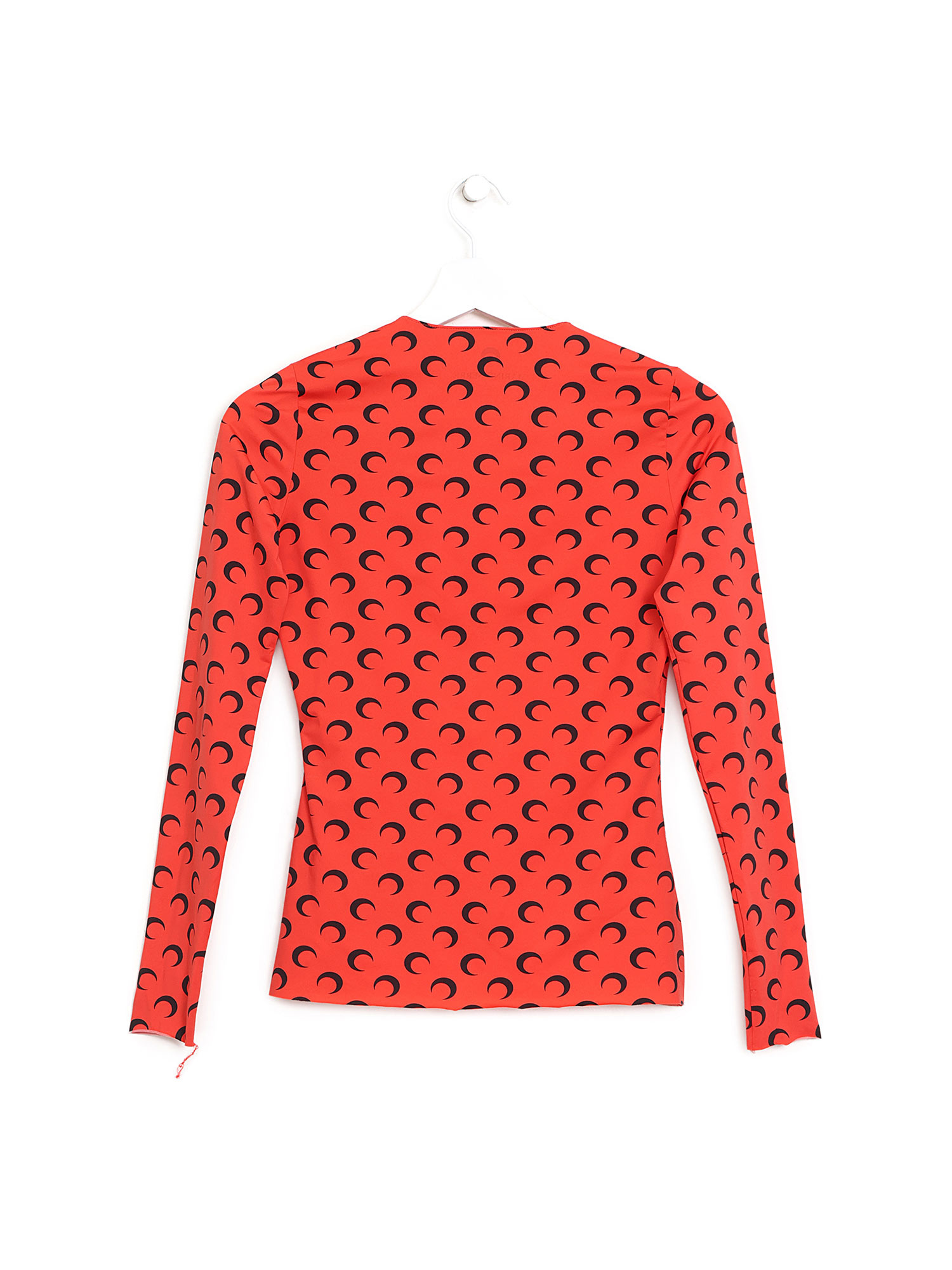Long sleeve t-shirt with monogram pattern in red and black throughout. Round neckline. Made from recycled materials.