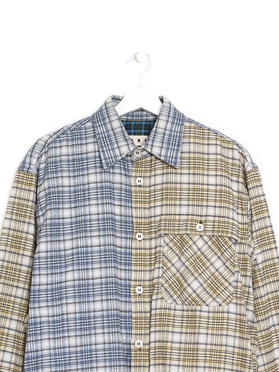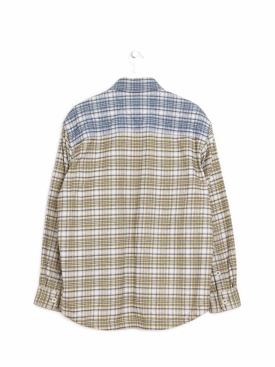 Long sleeve plaid shirt in a classic check pattern. Front button closure. Standard shirt collar. Single chest pocket.