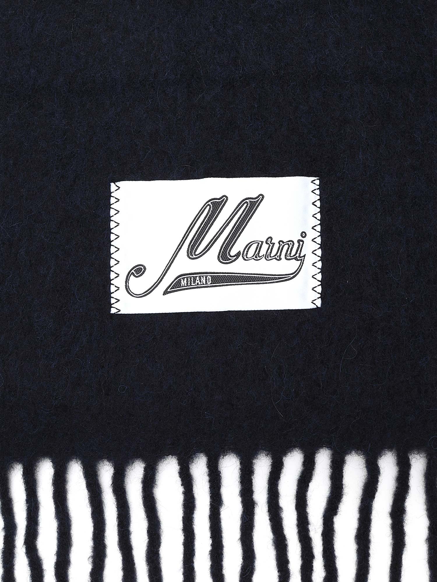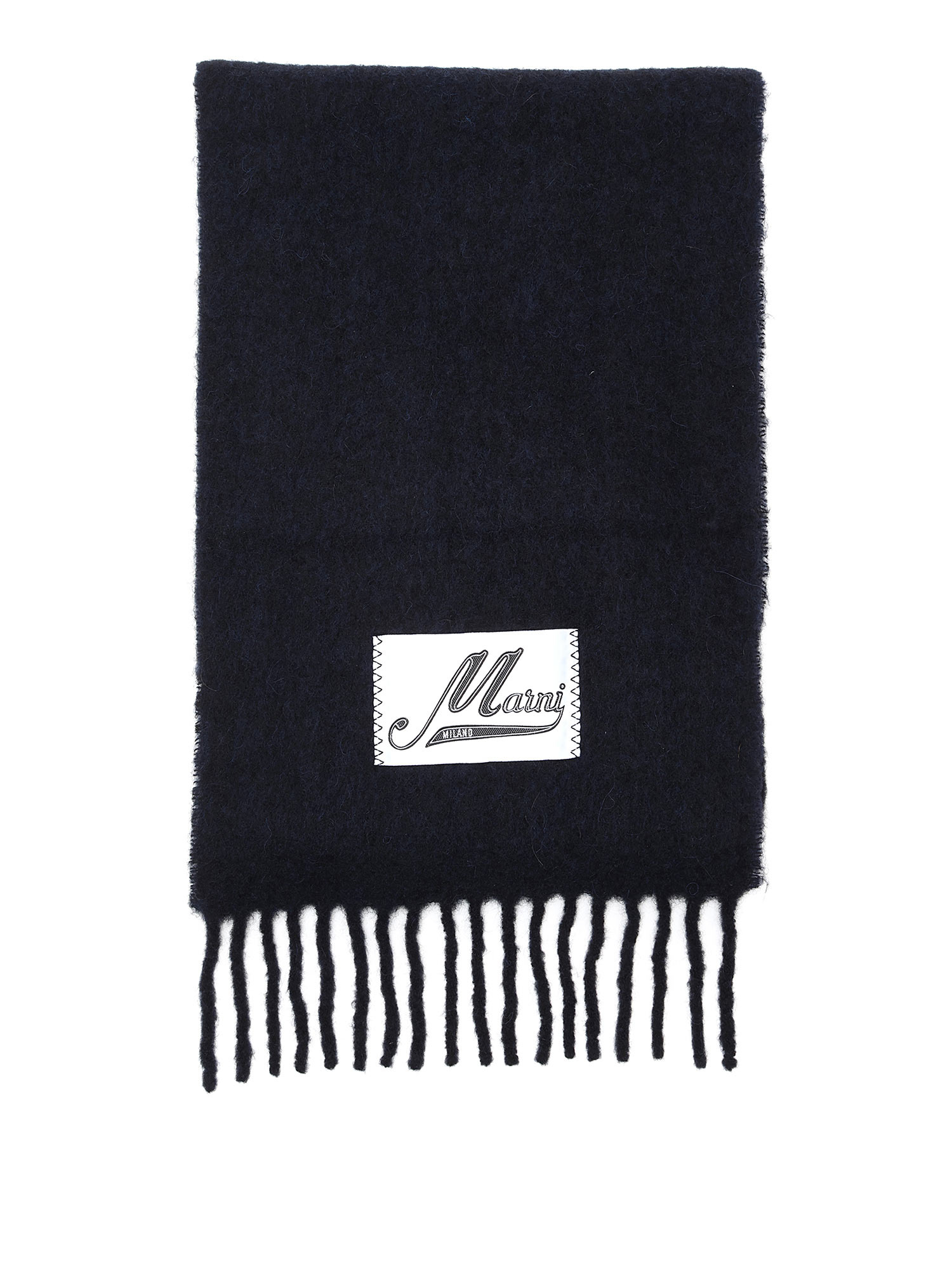 Navy blue mohair-blend scarf featuring a luxurious soft texture.