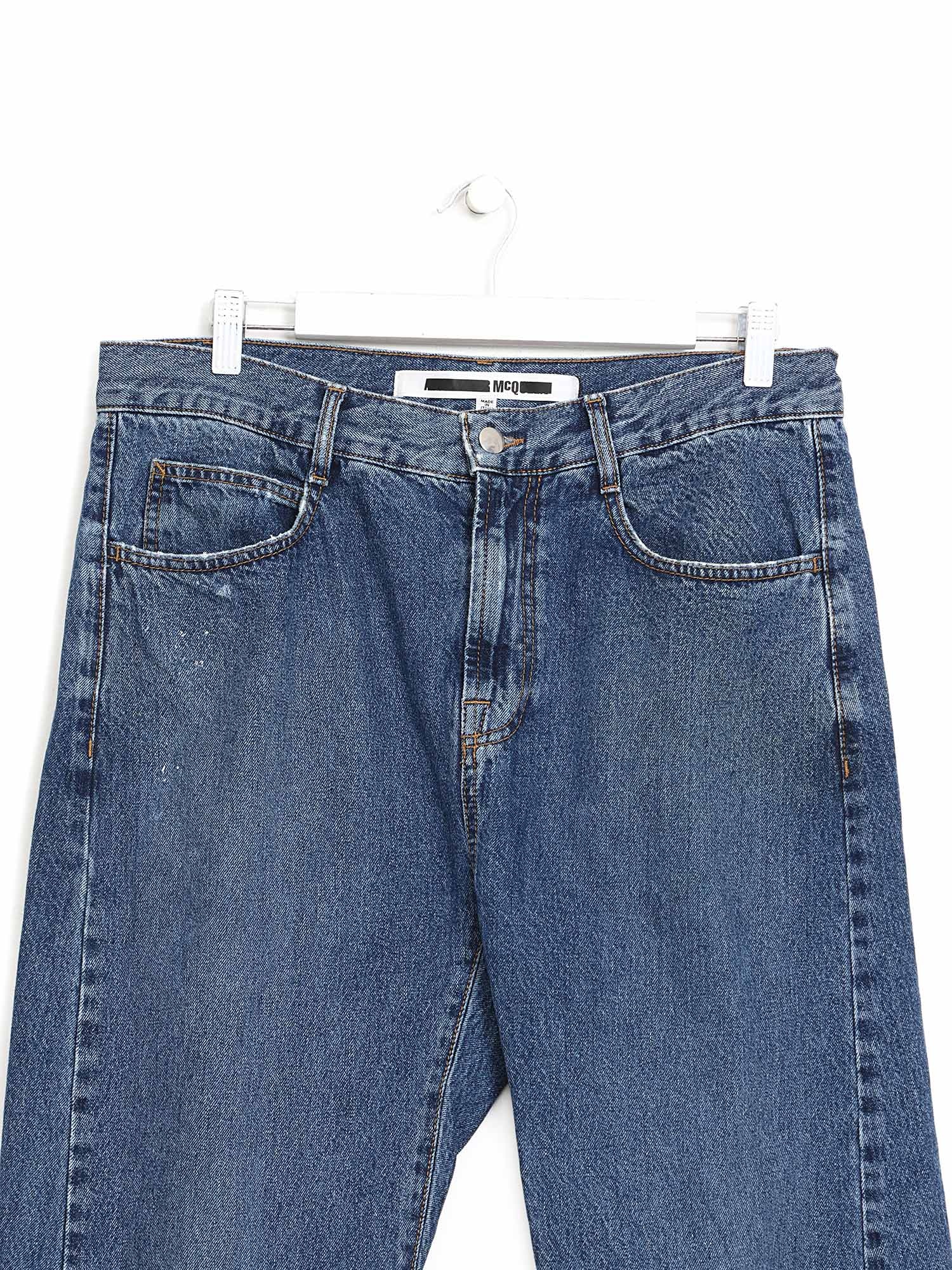 Straight-leg denim jeans in blue. Button closure. Five-pocket styling.
