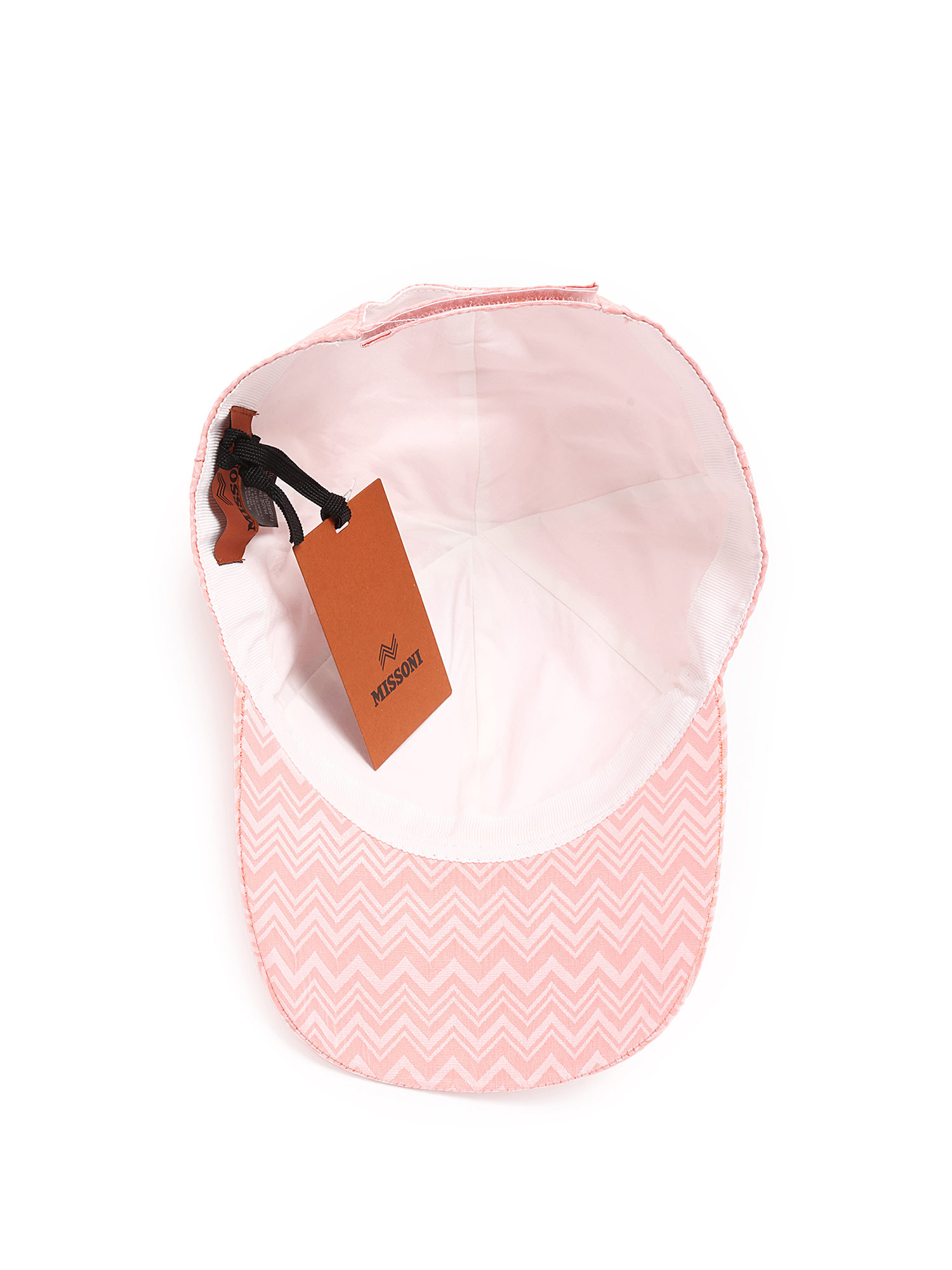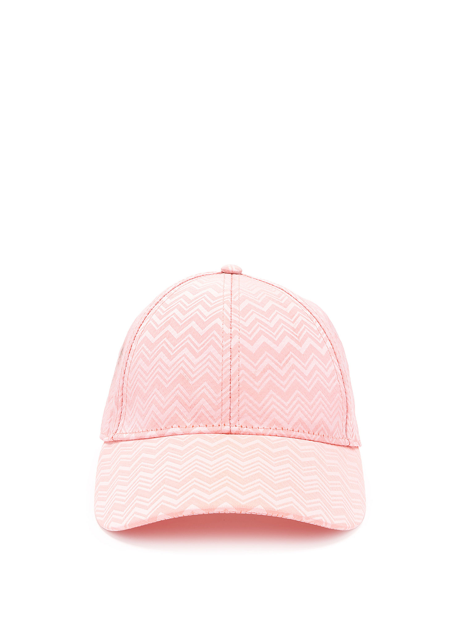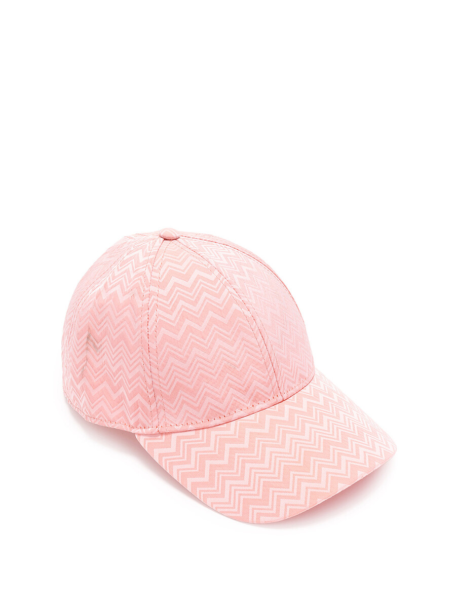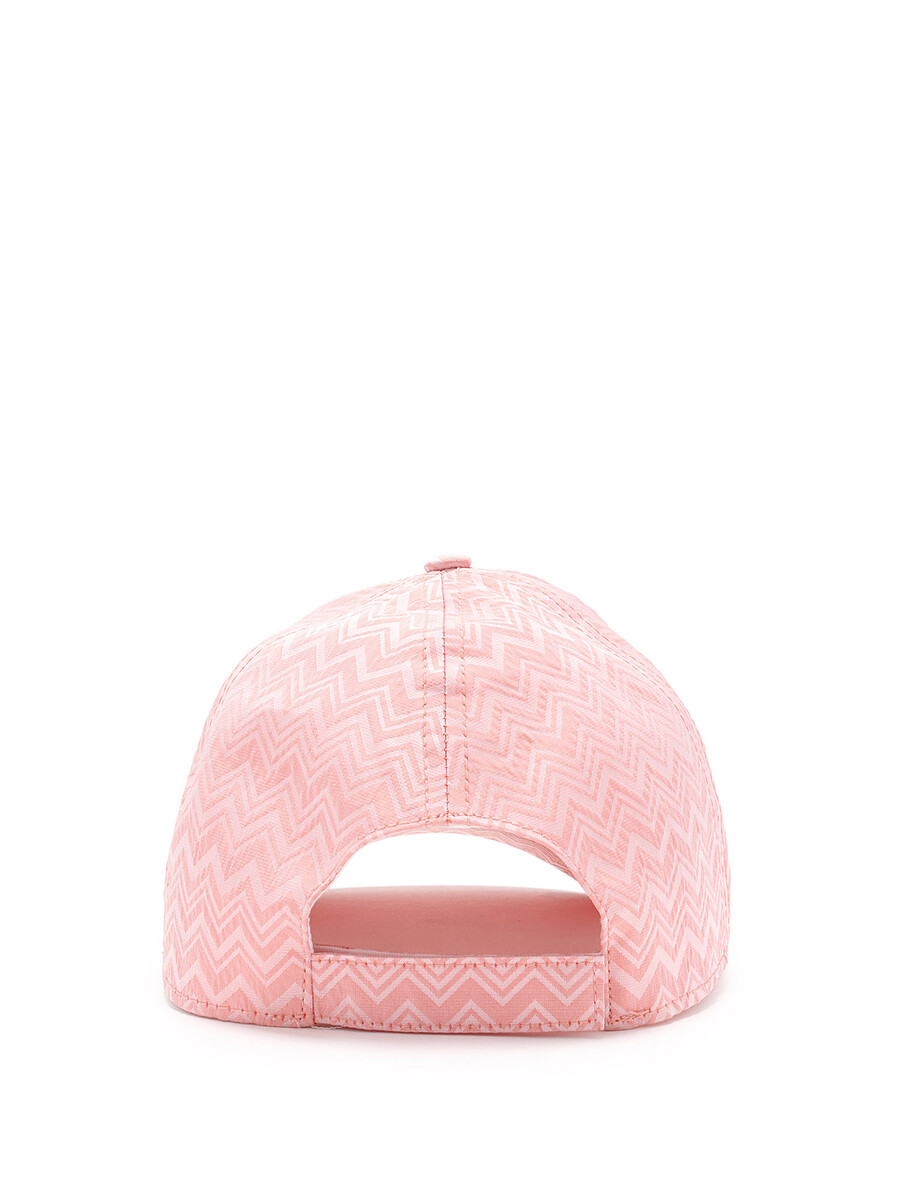 Geometric pattern cap in pale pink. Adjustable strap closure. Logo tag on the inside.