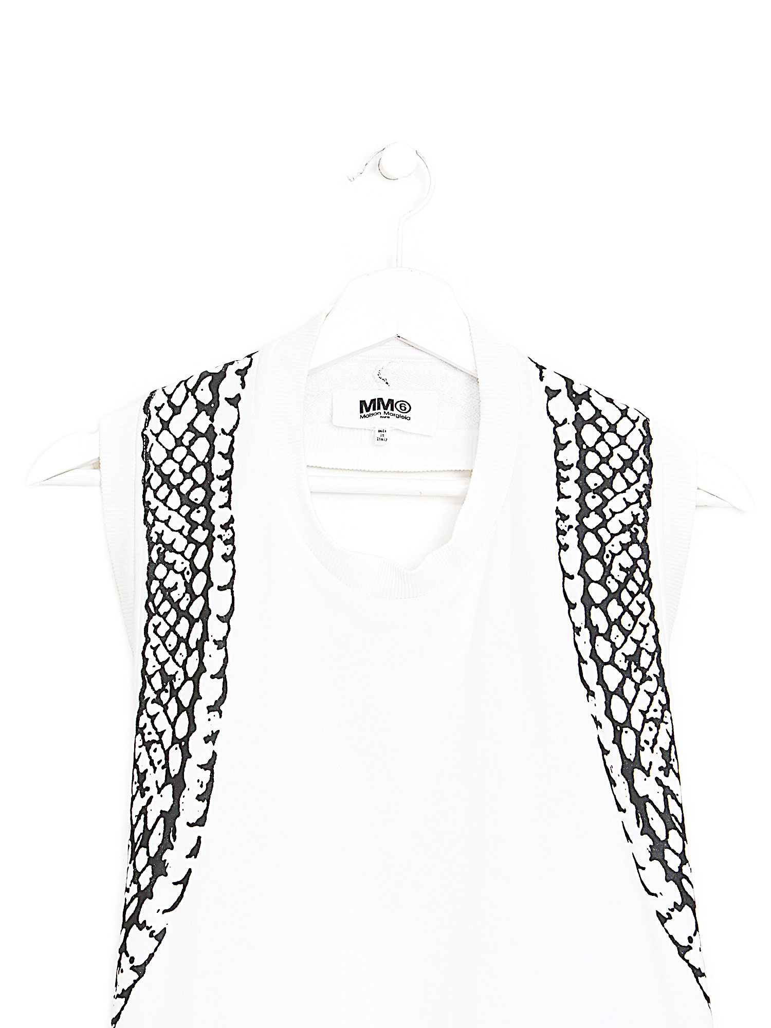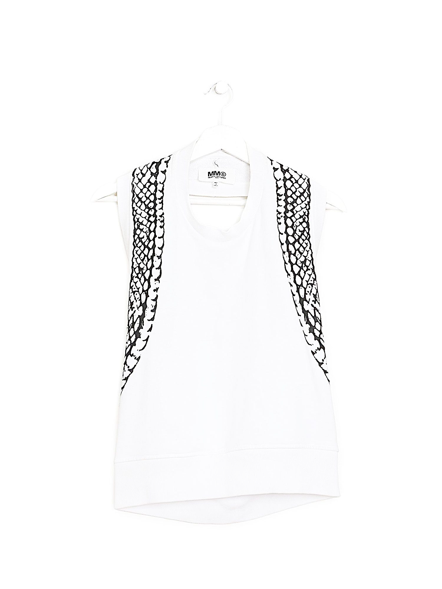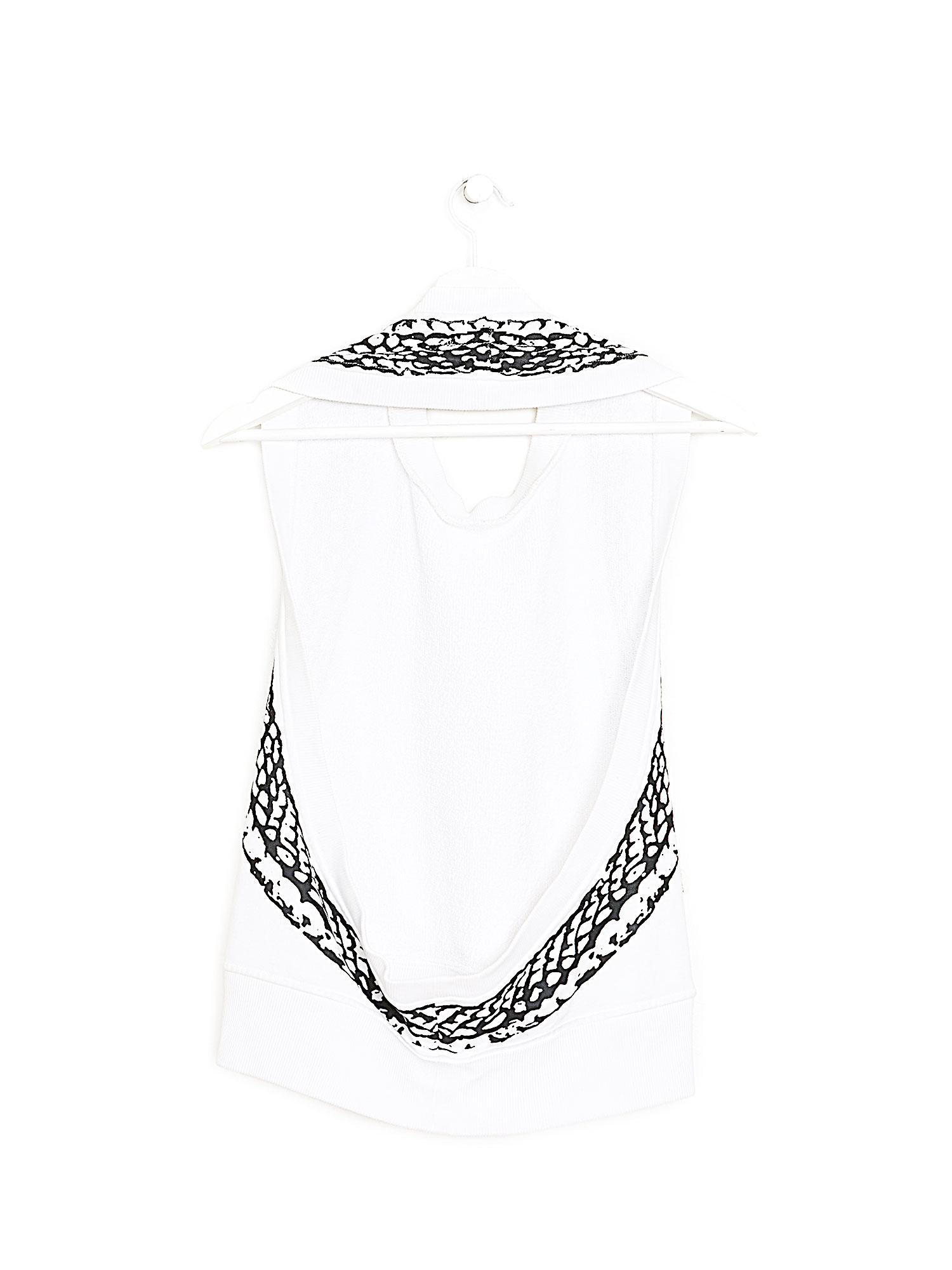 Sleeveless halter top with a graphic pattern in white. Backless design offering a contemporary and chic appeal. Made entirely from cotton for a comfortable, breathable fit.