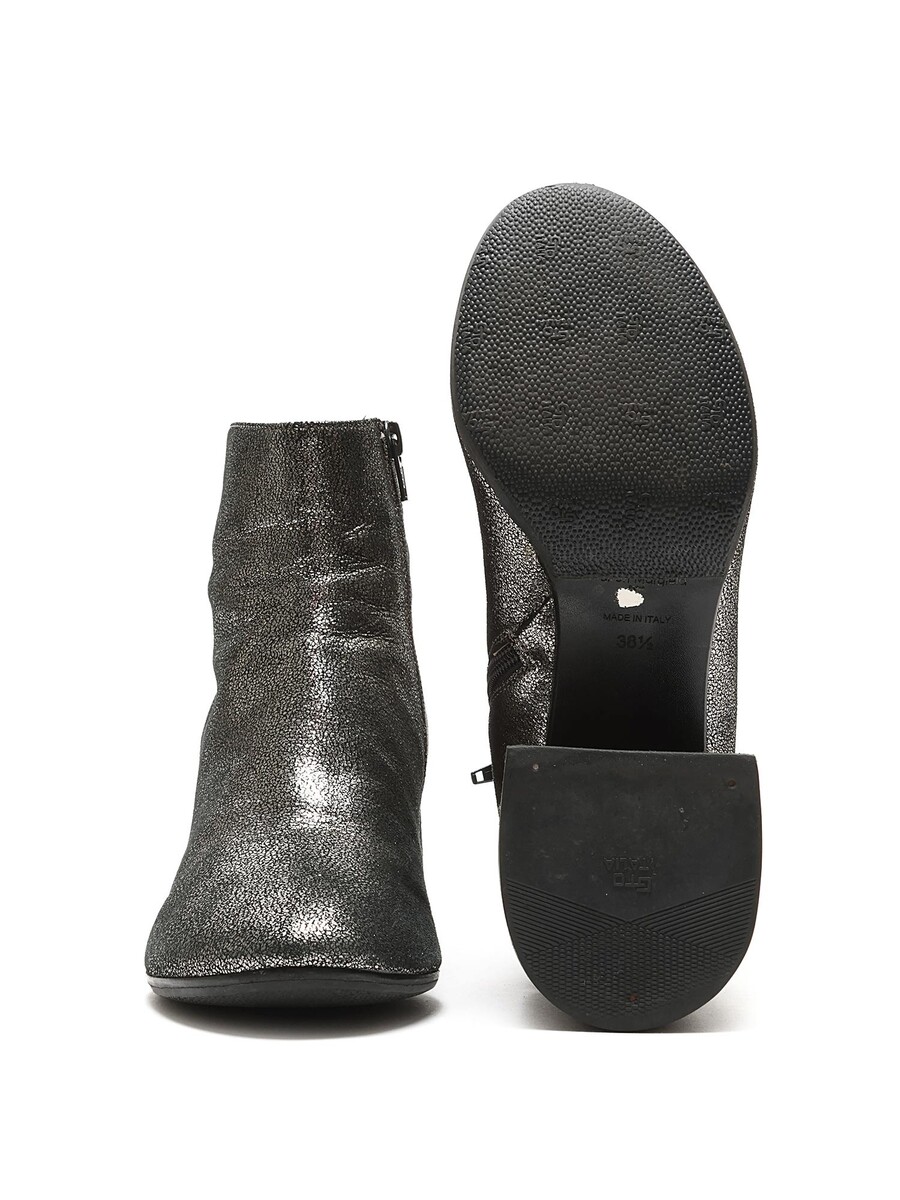 Metallic leather knee-high boots with a rounded toe. Side zipper closure. Rubber sole. Comes with a protective dust bag.