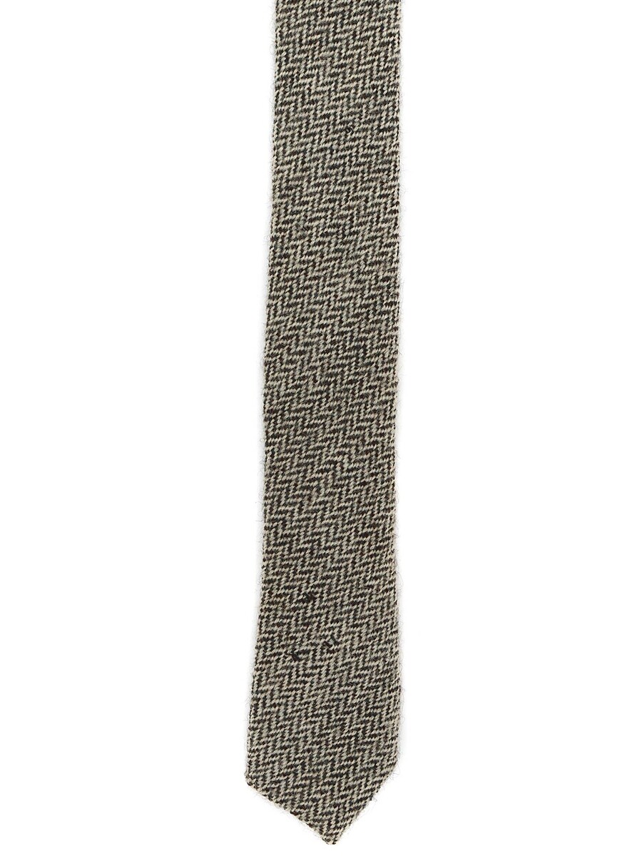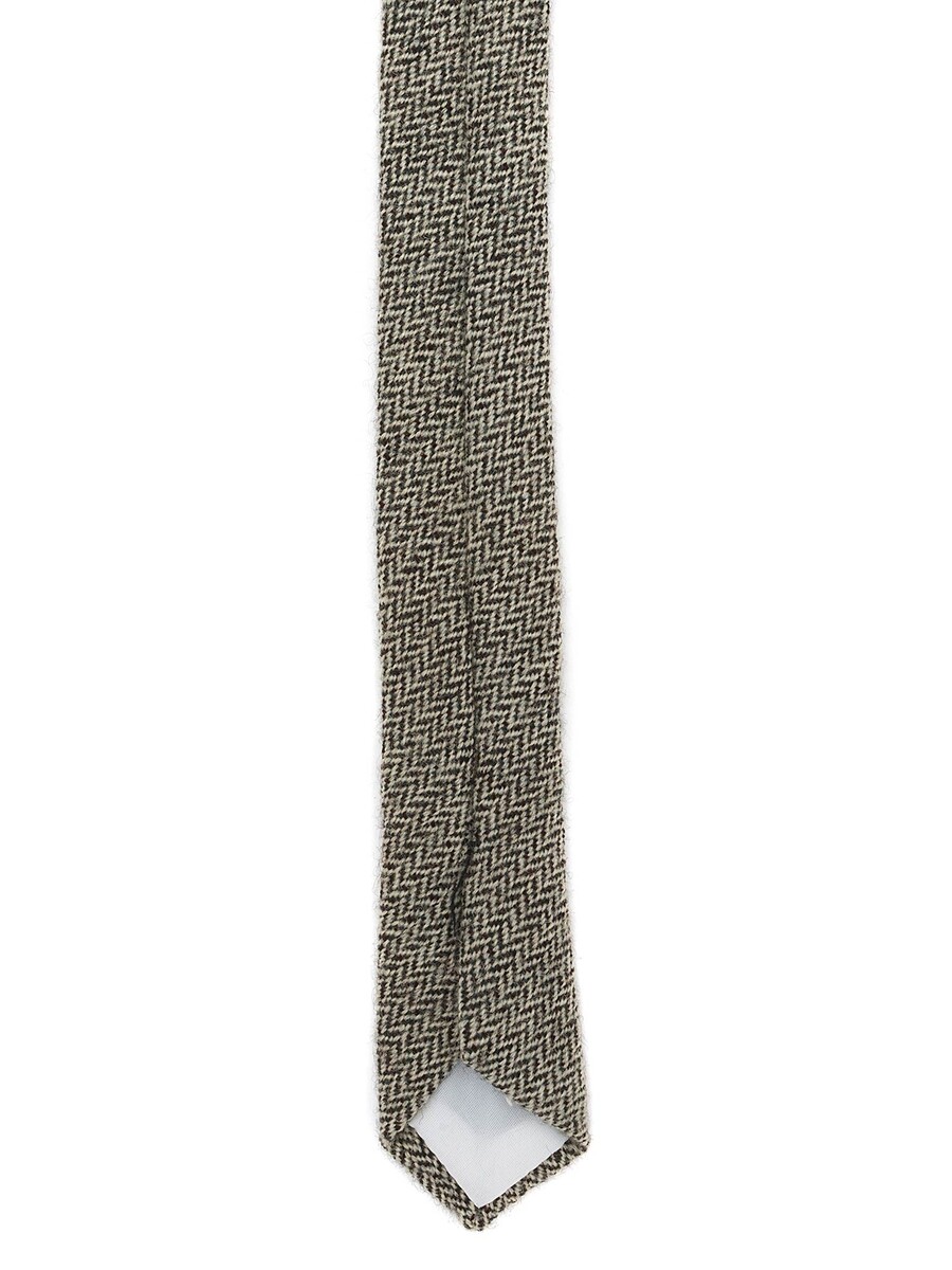 Classic chevron patterned tie in shades of brown and cream.