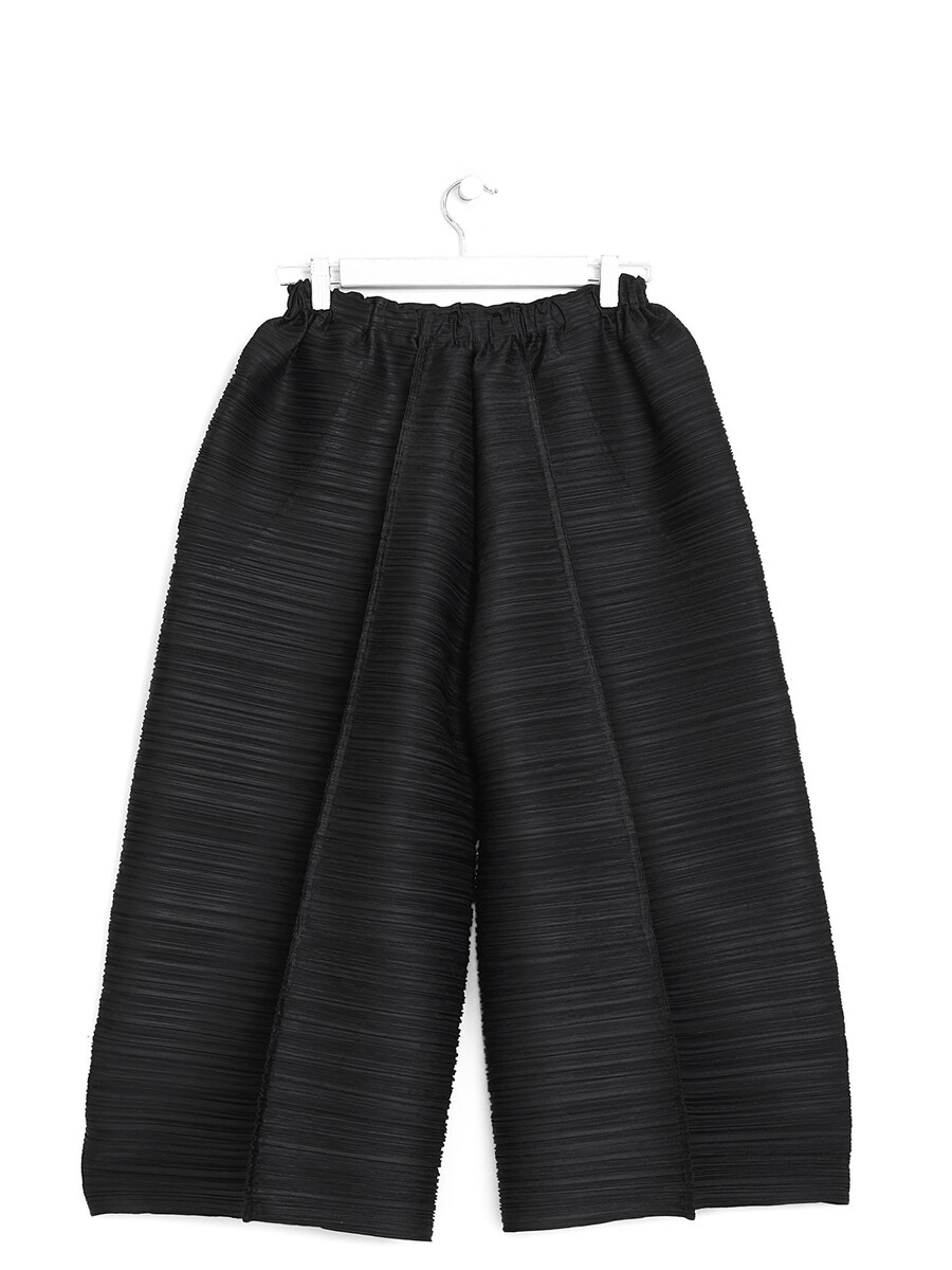 Balloon-cut pleated trousers in black. Elastic waistband. Lightweight, flowing design made for comfort and style.