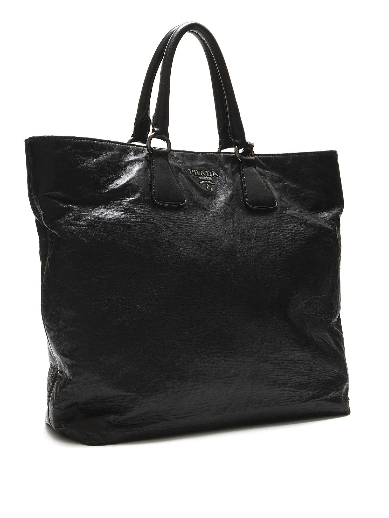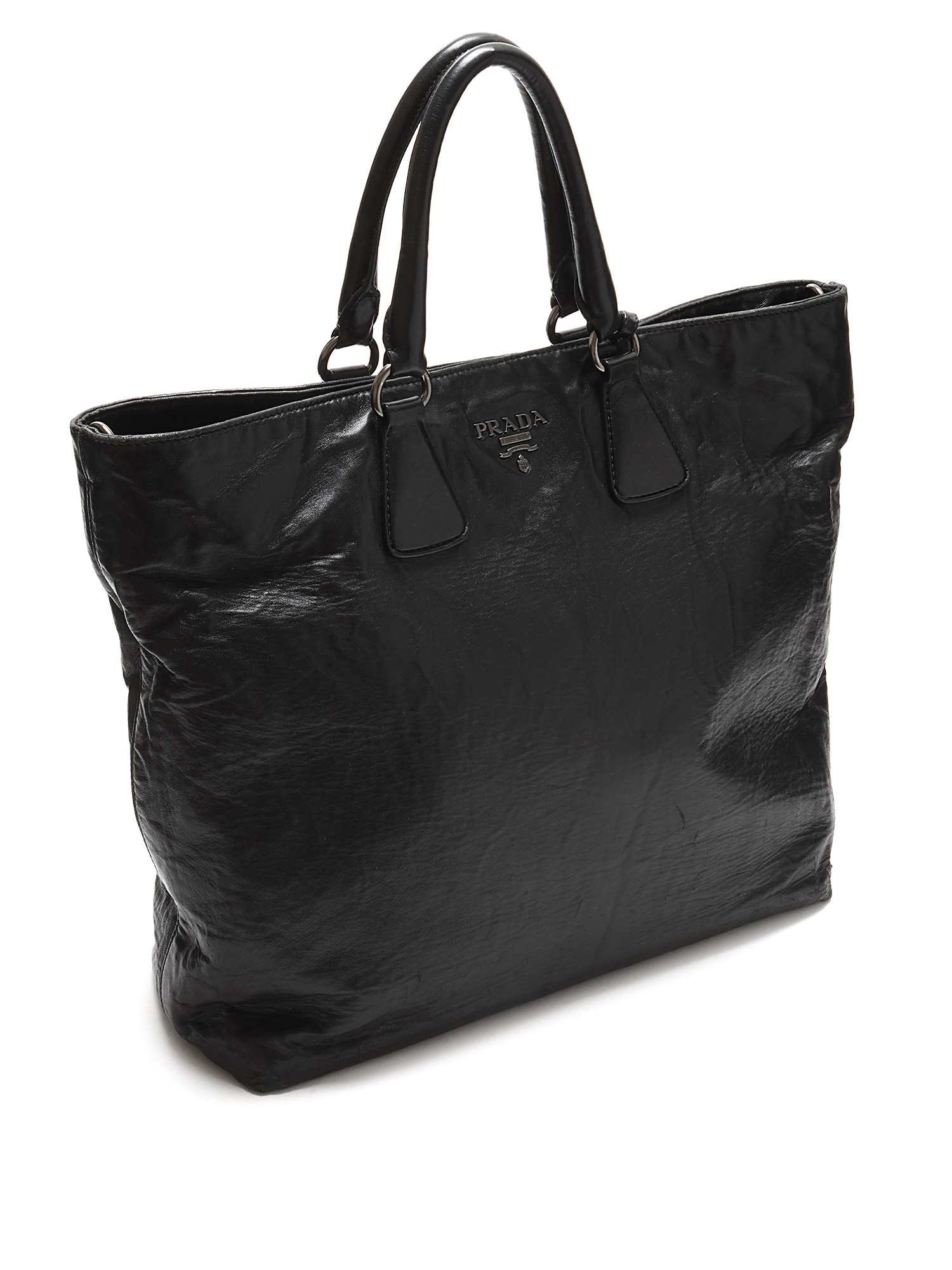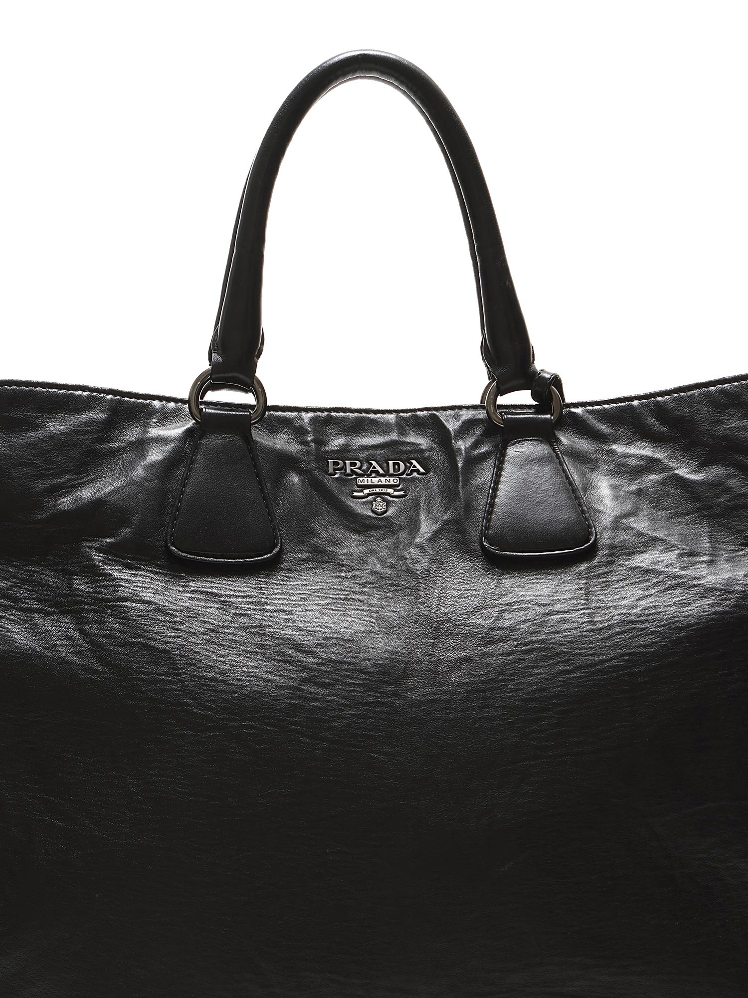 Grained leather tote bag in black. Zipper closure on top. Leather handles with detachable shoulder strap. Silver-tone hardware.