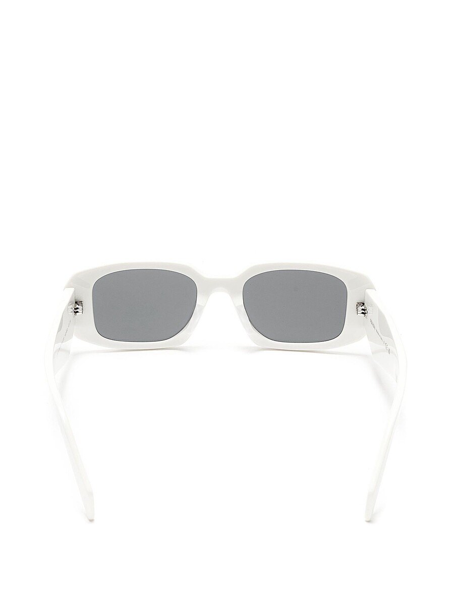 White acetate sunglasses featuring silver-tone hinges. Gradient lenses. With protective box.