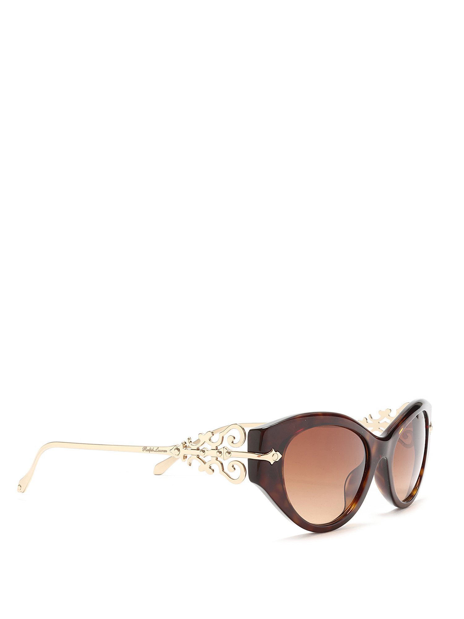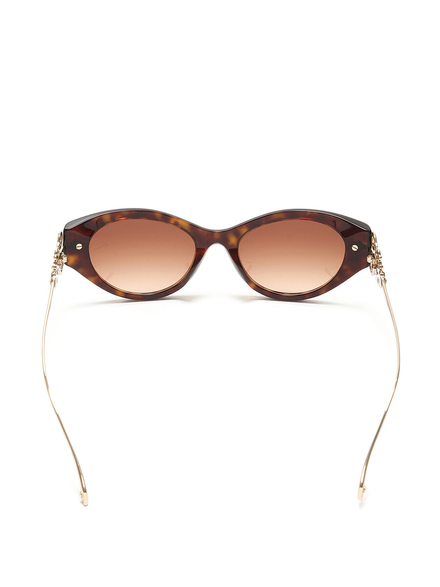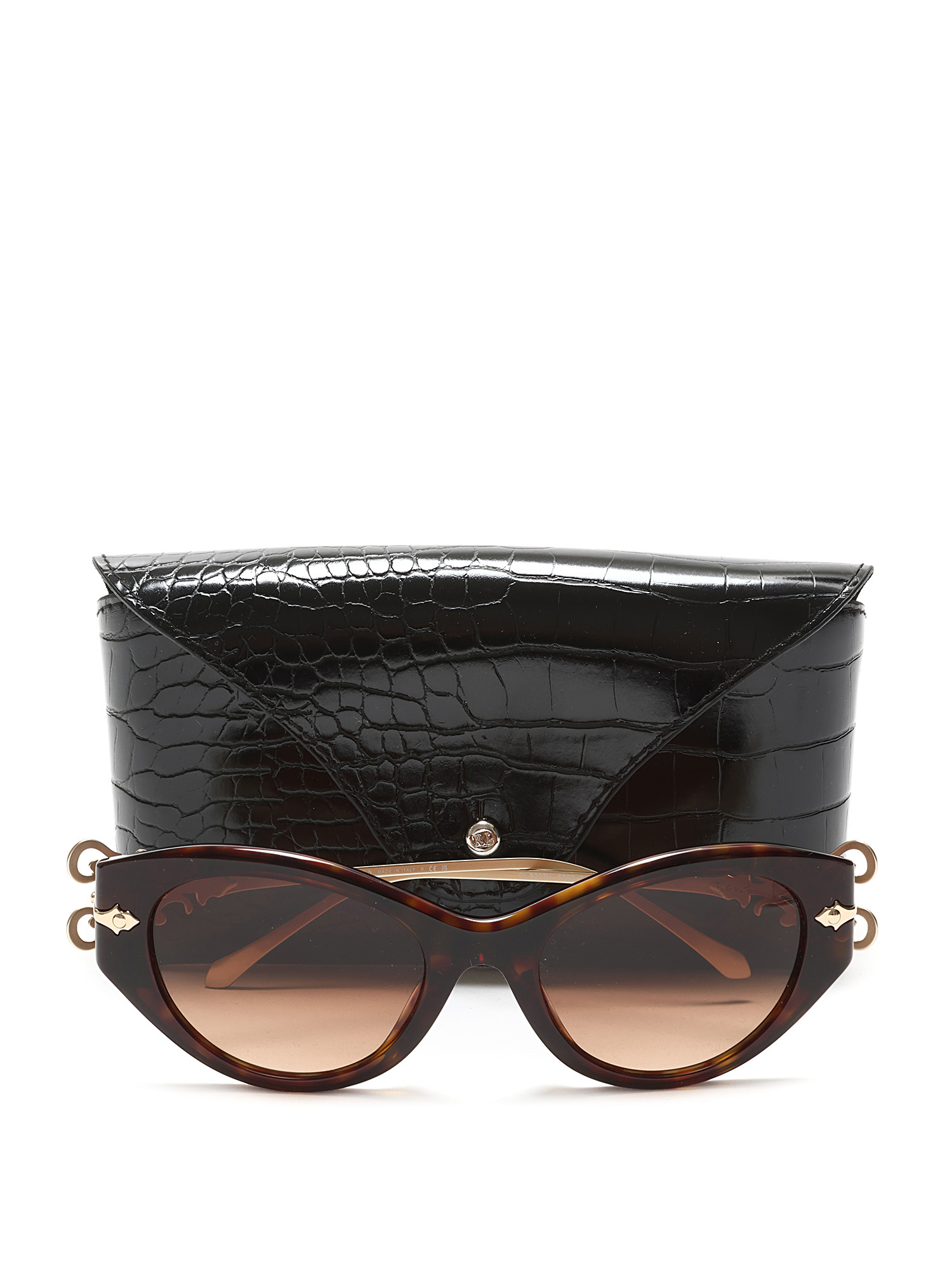 Cat-eye sunglasses in premium acetate with tortoise shell pattern. Gold-tone decorative elements on the temples. Includes a croc-embossed case.