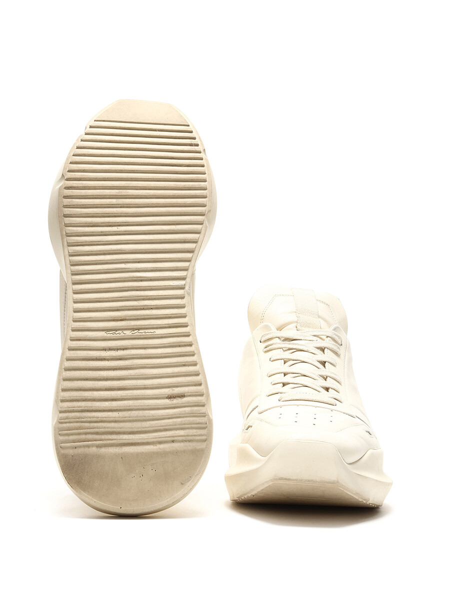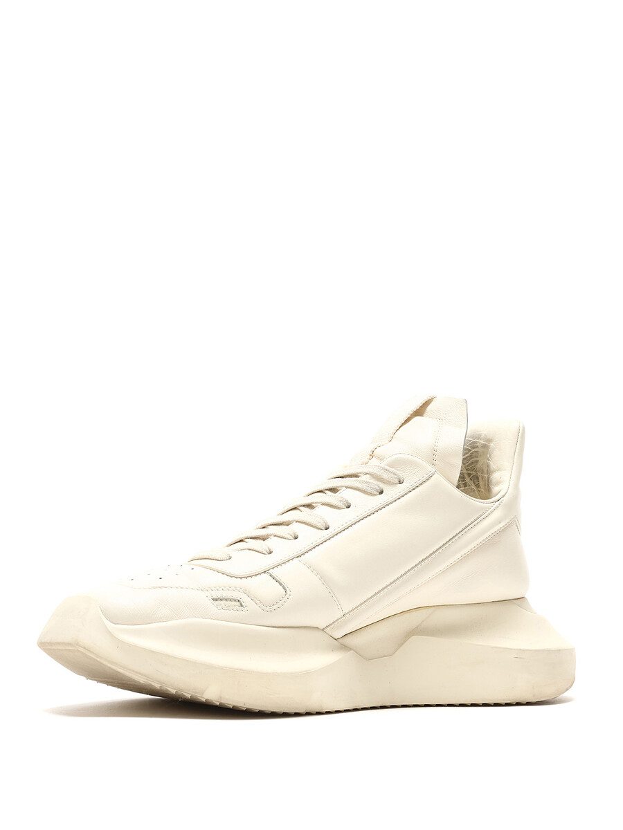 High-top leather sneakers in white with a perforated design. Lace-up closure, round toe style, and rubber sole.