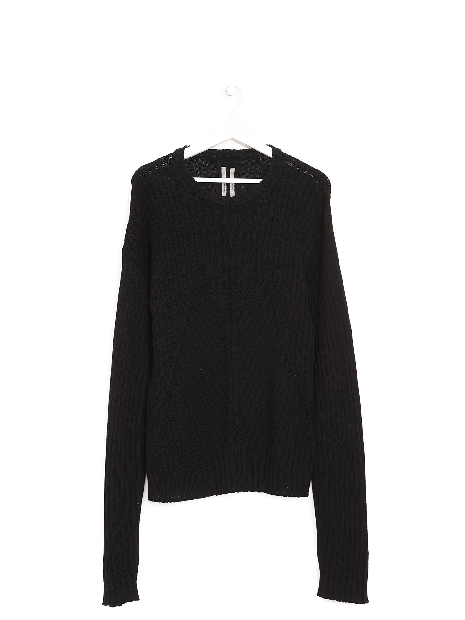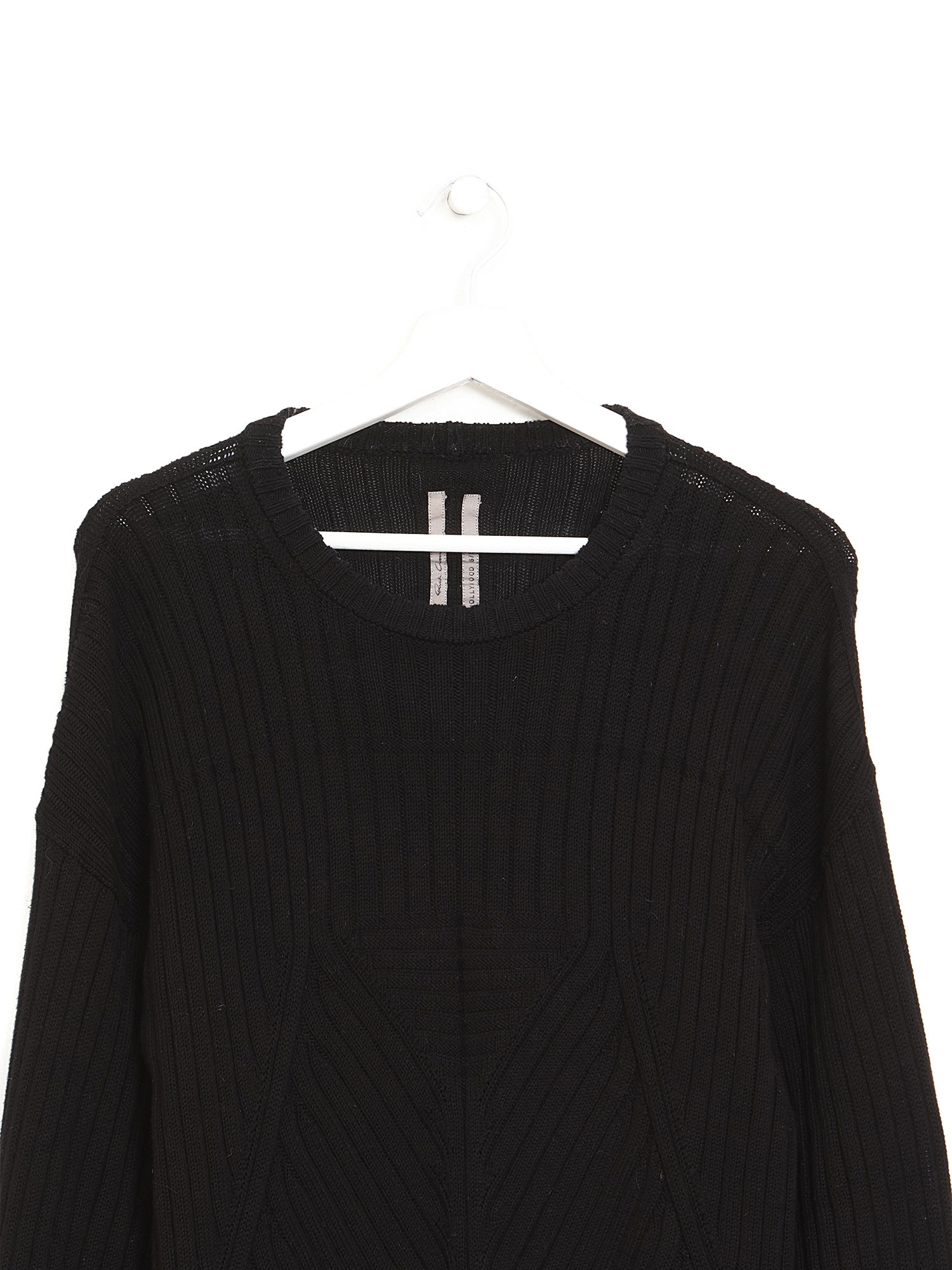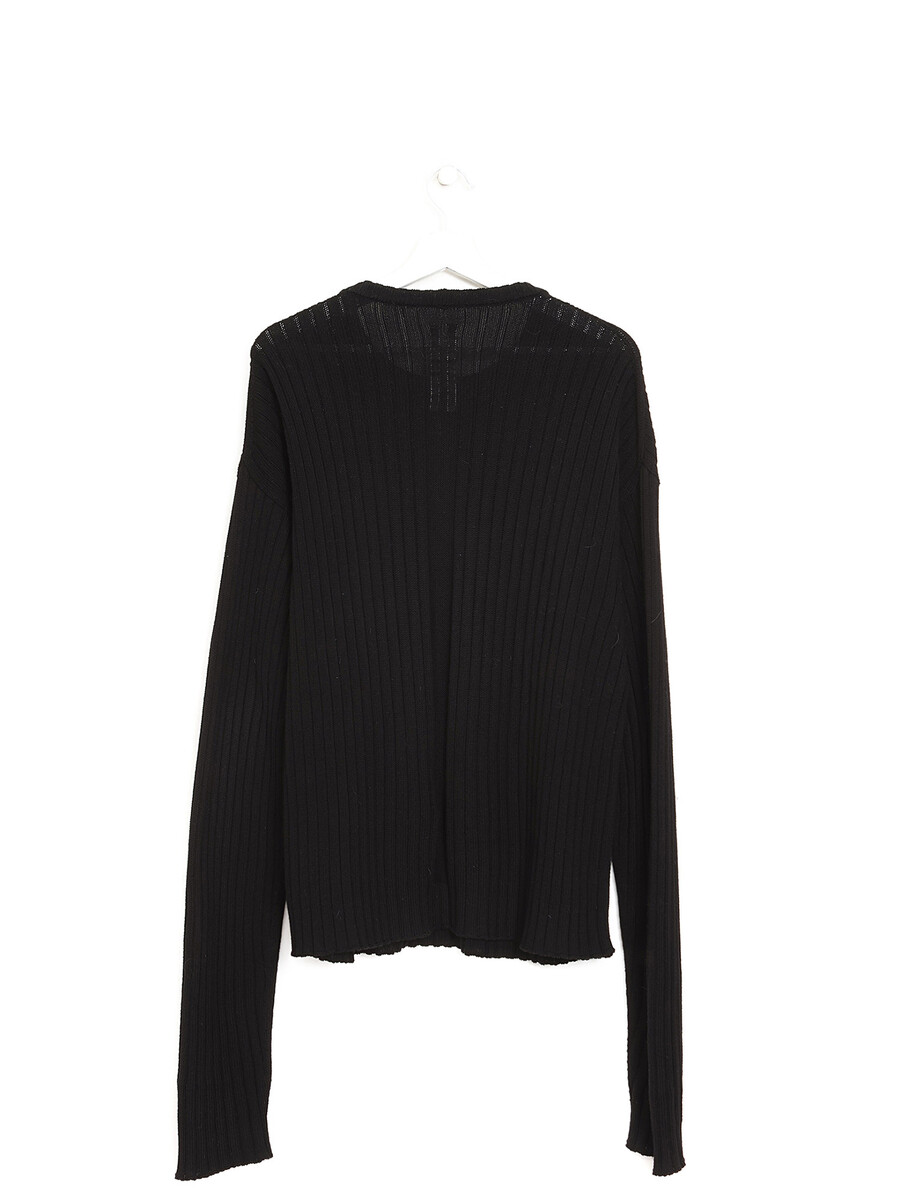Long sleeve knit sweater in black. Round collar.