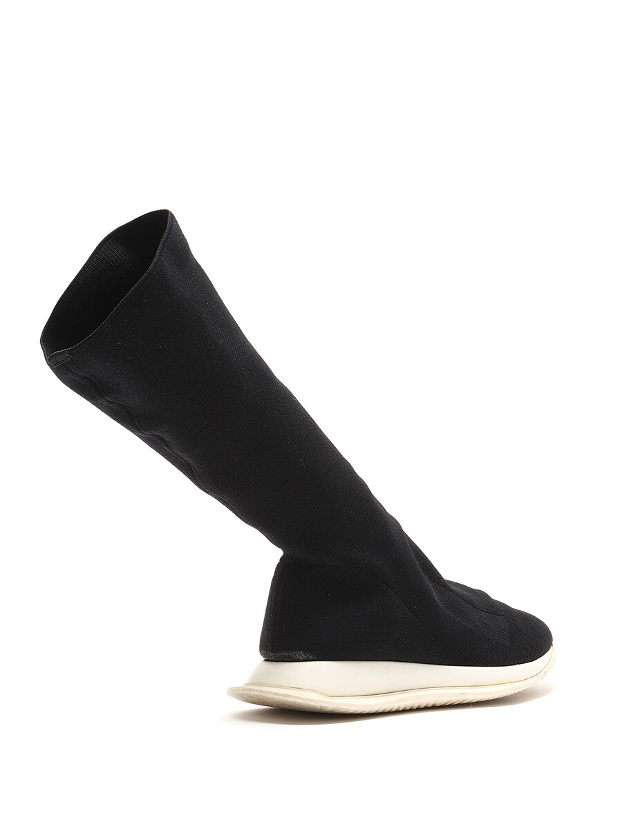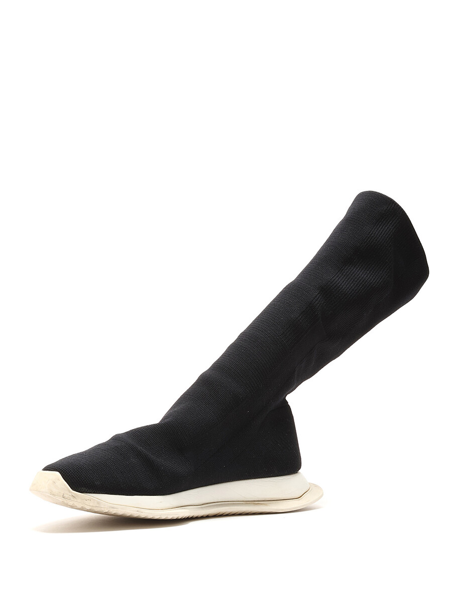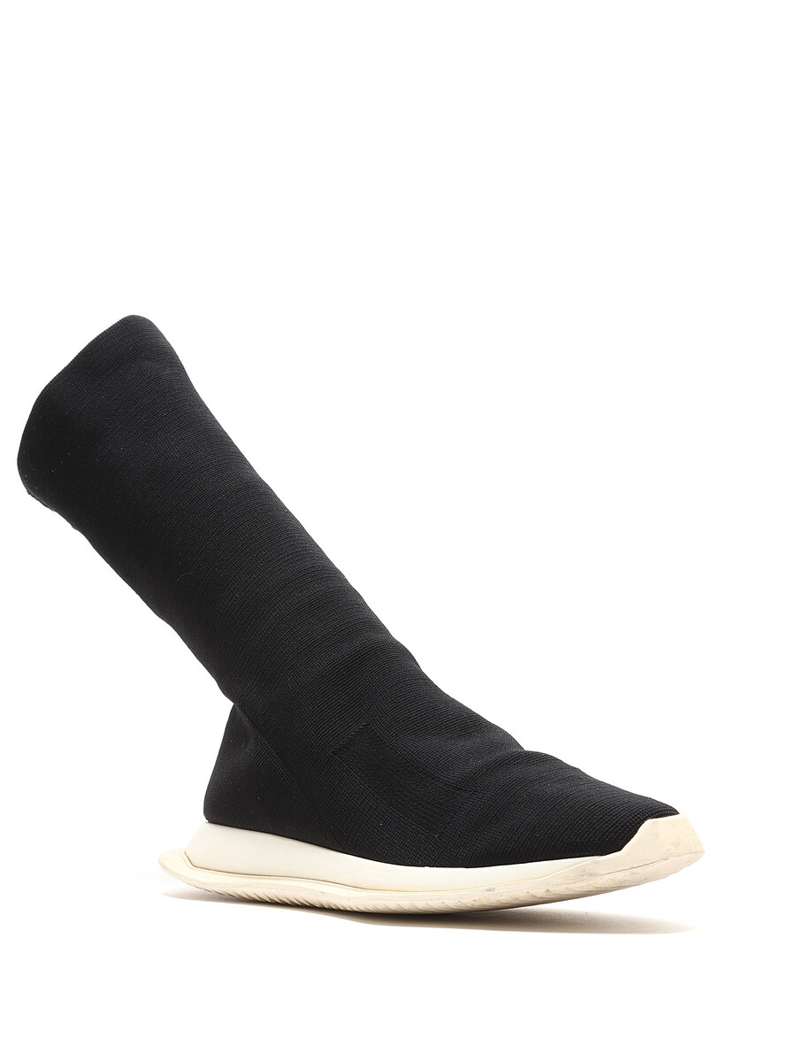 High-top stretch fabric sneakers in black and white. Slip-on style. Closed round toe.