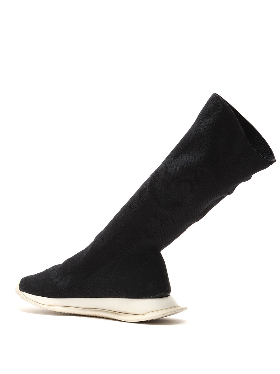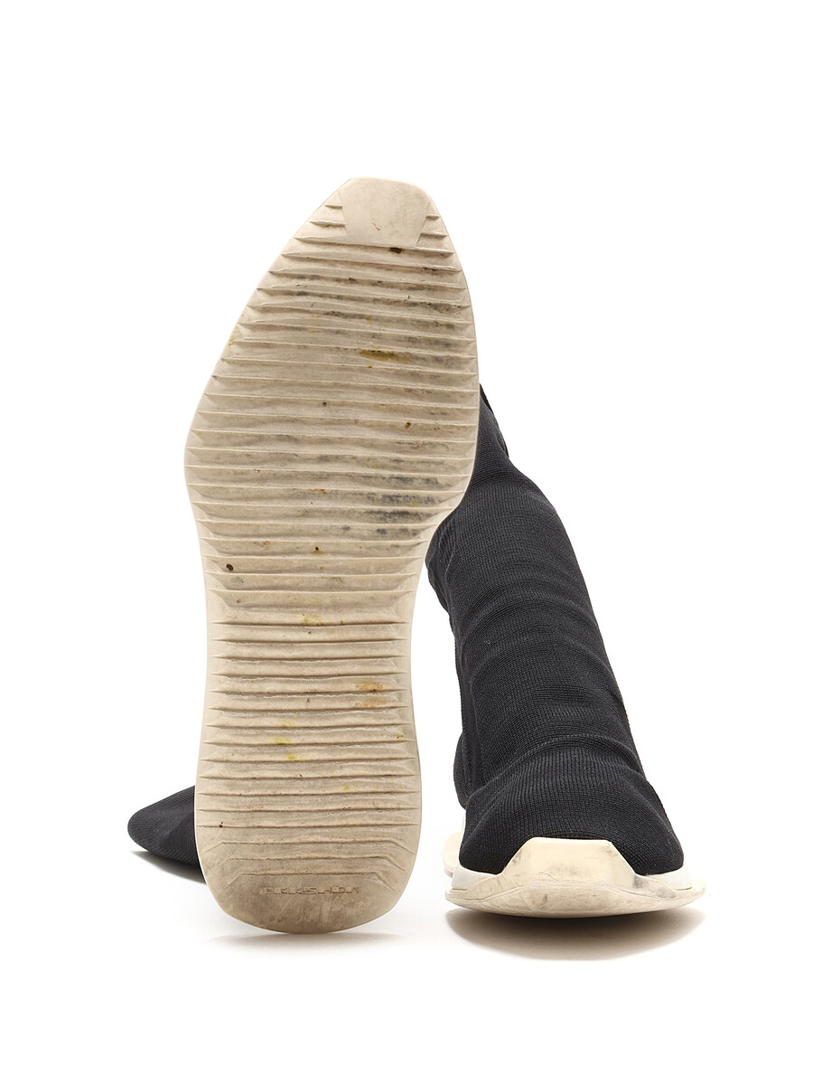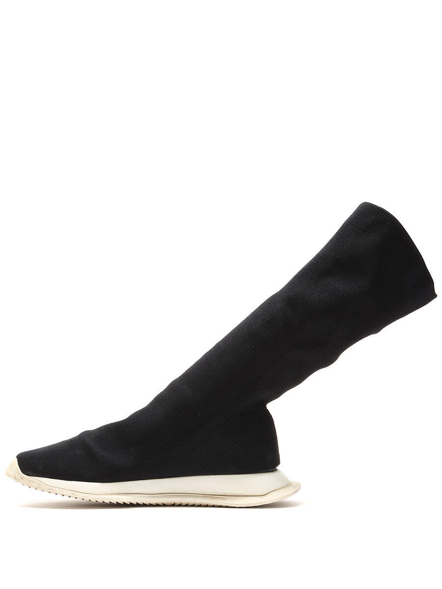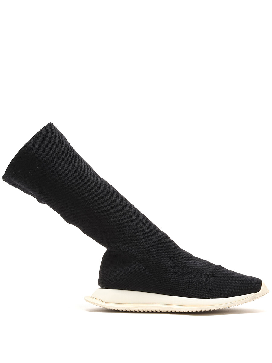 High-top stretch fabric sneakers in black and white. Slip-on style. Closed round toe.