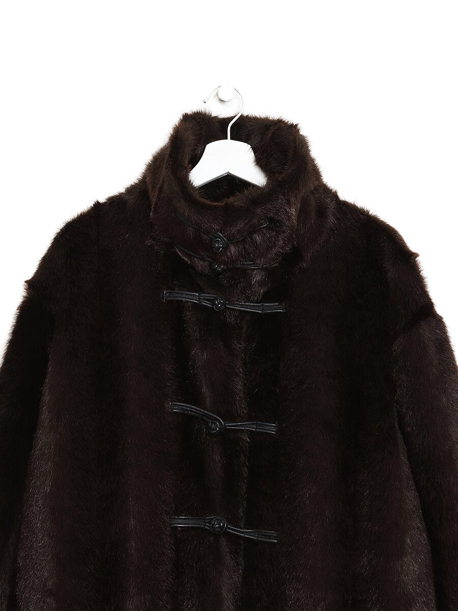 Long sleeve faux fur coat in a soft texture with an open front closure. Designed for a relaxed fit, creating a luxurious silhouette.