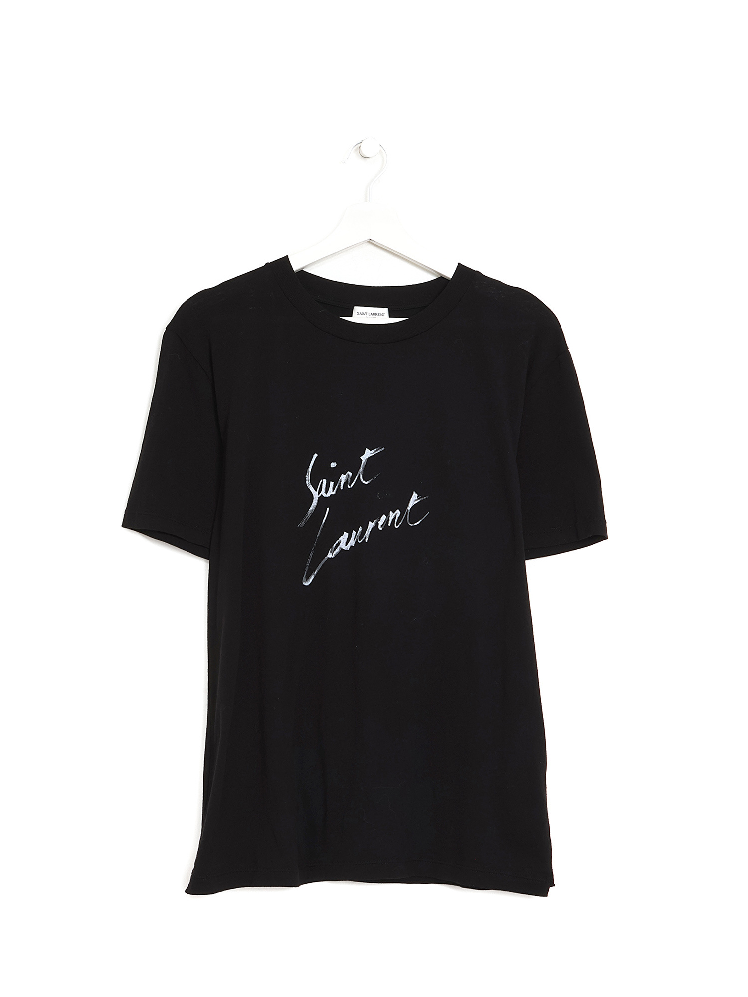 Black graphic logo t-shirt featuring a crew neck and short sleeves. Vibrant printed logo at chest. Classic fit.
