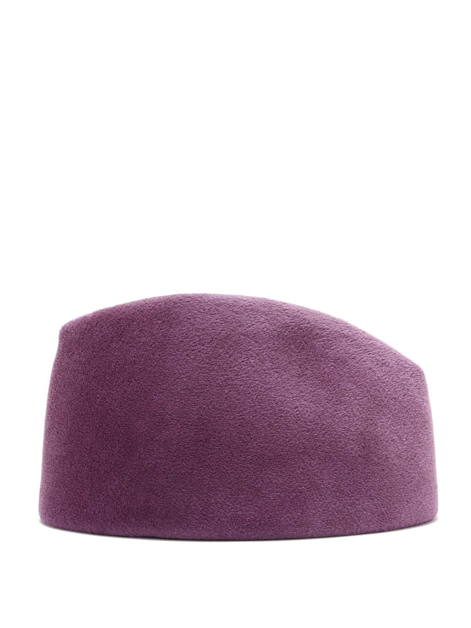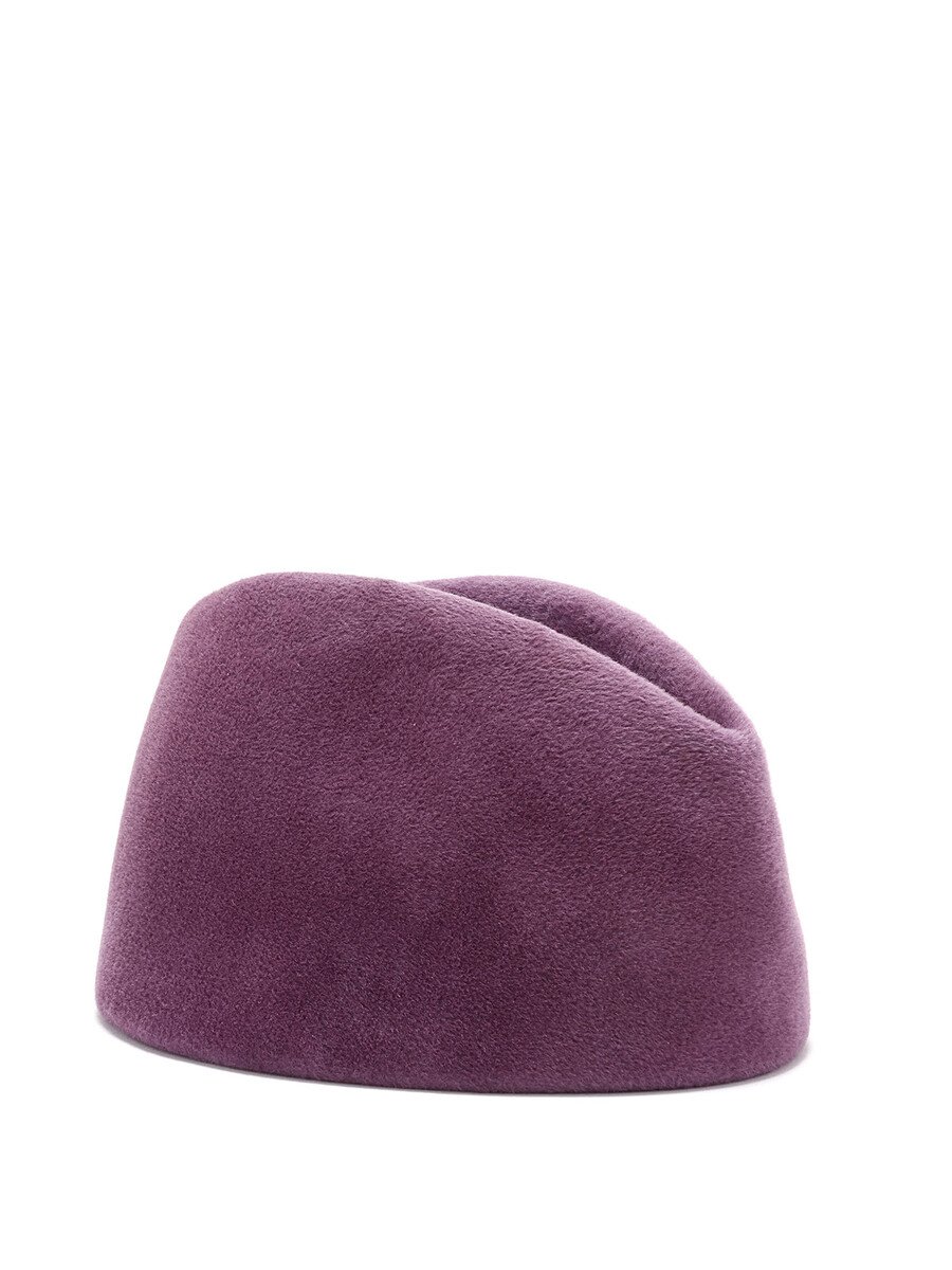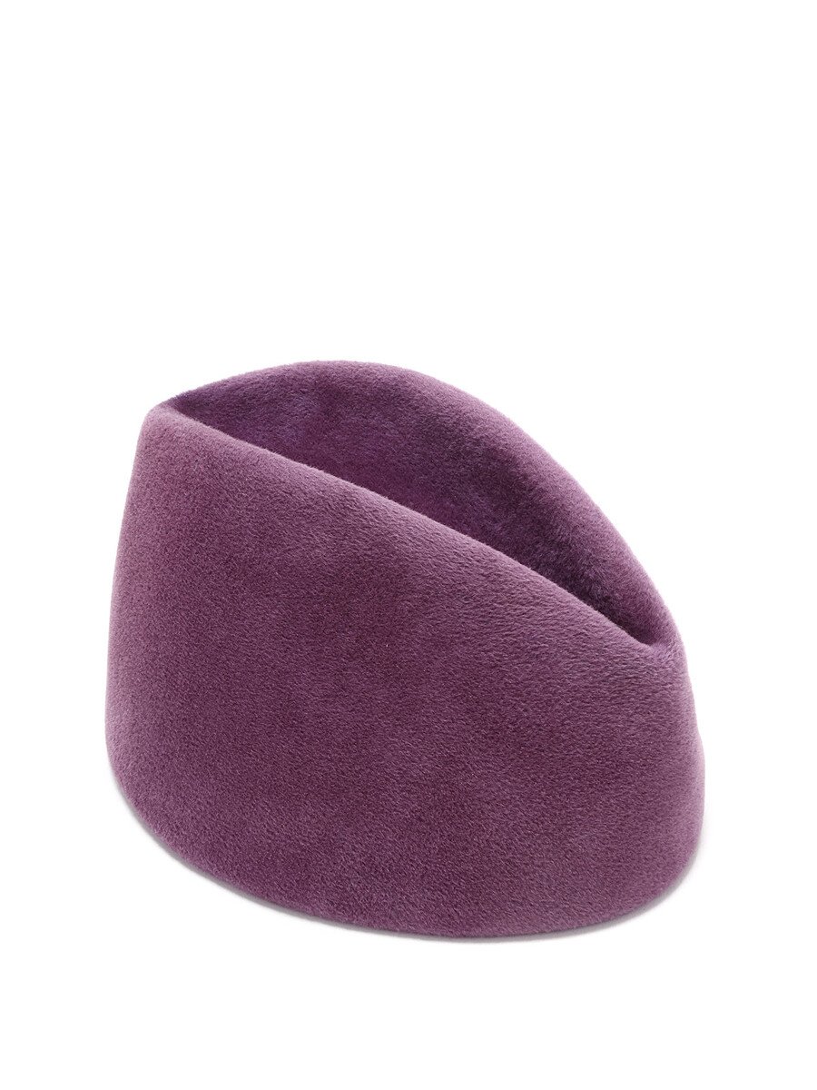 Oval felted fabric hat in purple.