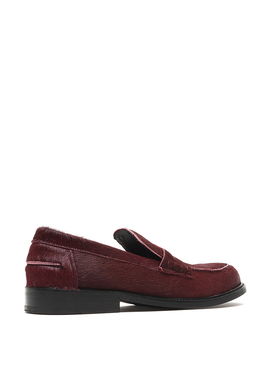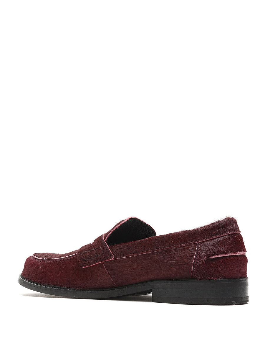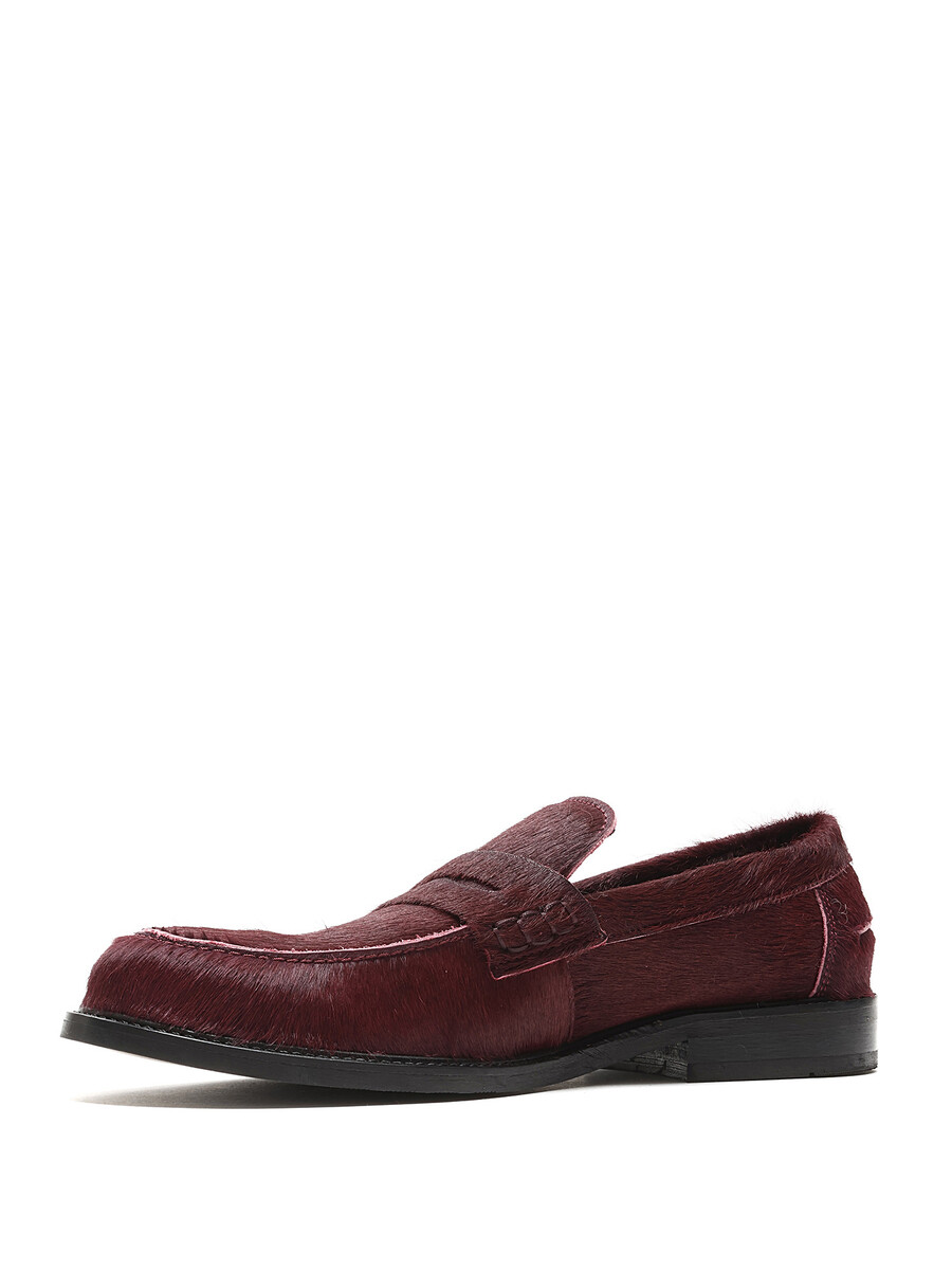 Short hair textured loafers in vibrant red. Slip-on style with rounded toe. Padded insole for added comfort.