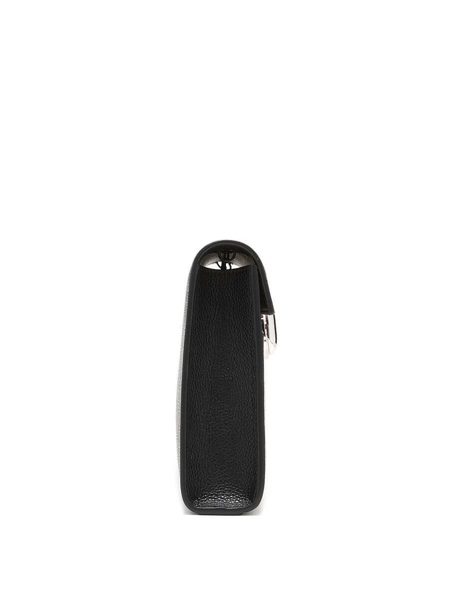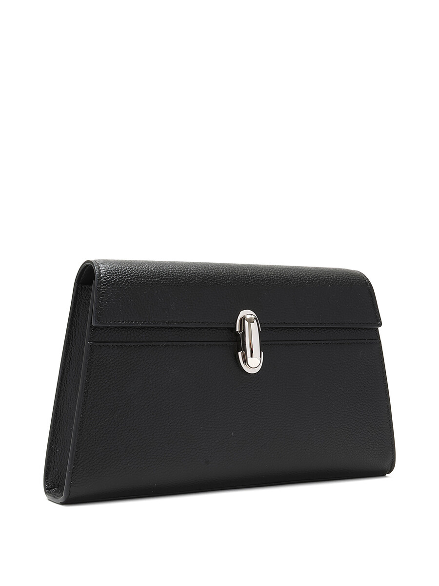 Leather clutch in black featuring tonal stitching. Clasp closure with silver-tone hardware. Comes with a dust bag.