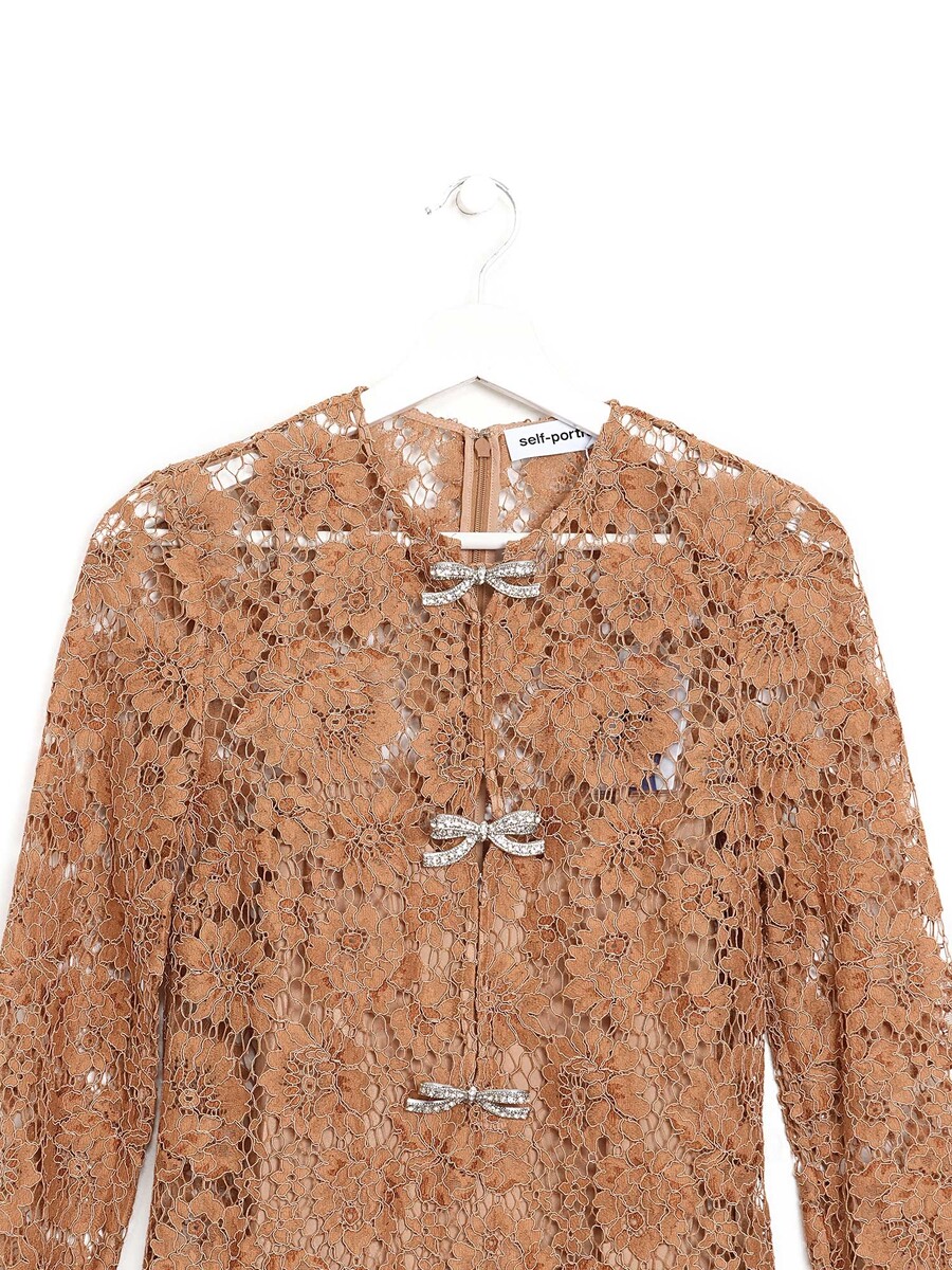 Model: SS25-001SA-T TAN LACE BOW MINI DRESS