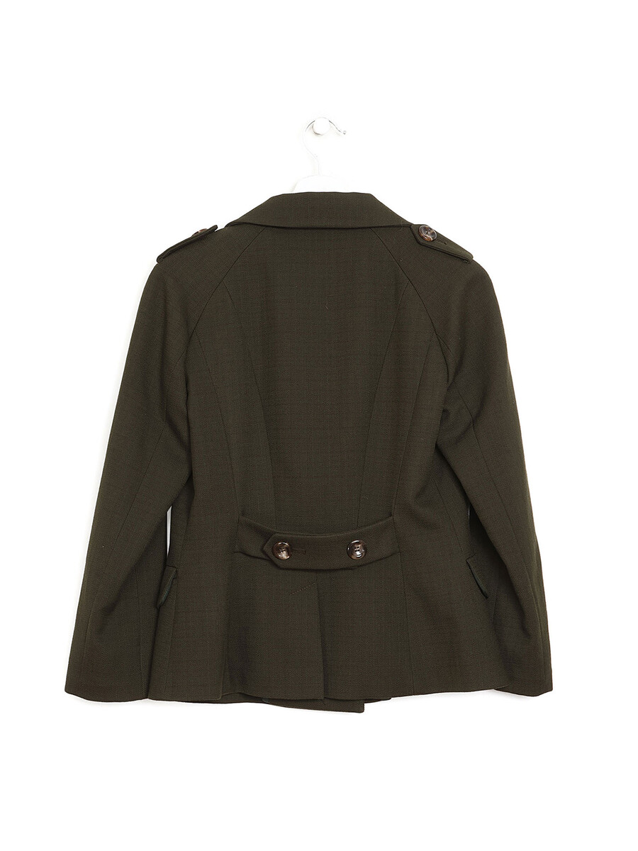 Double-breasted jacket in green. Épaulettes. Button closure. Notched lapel collar.