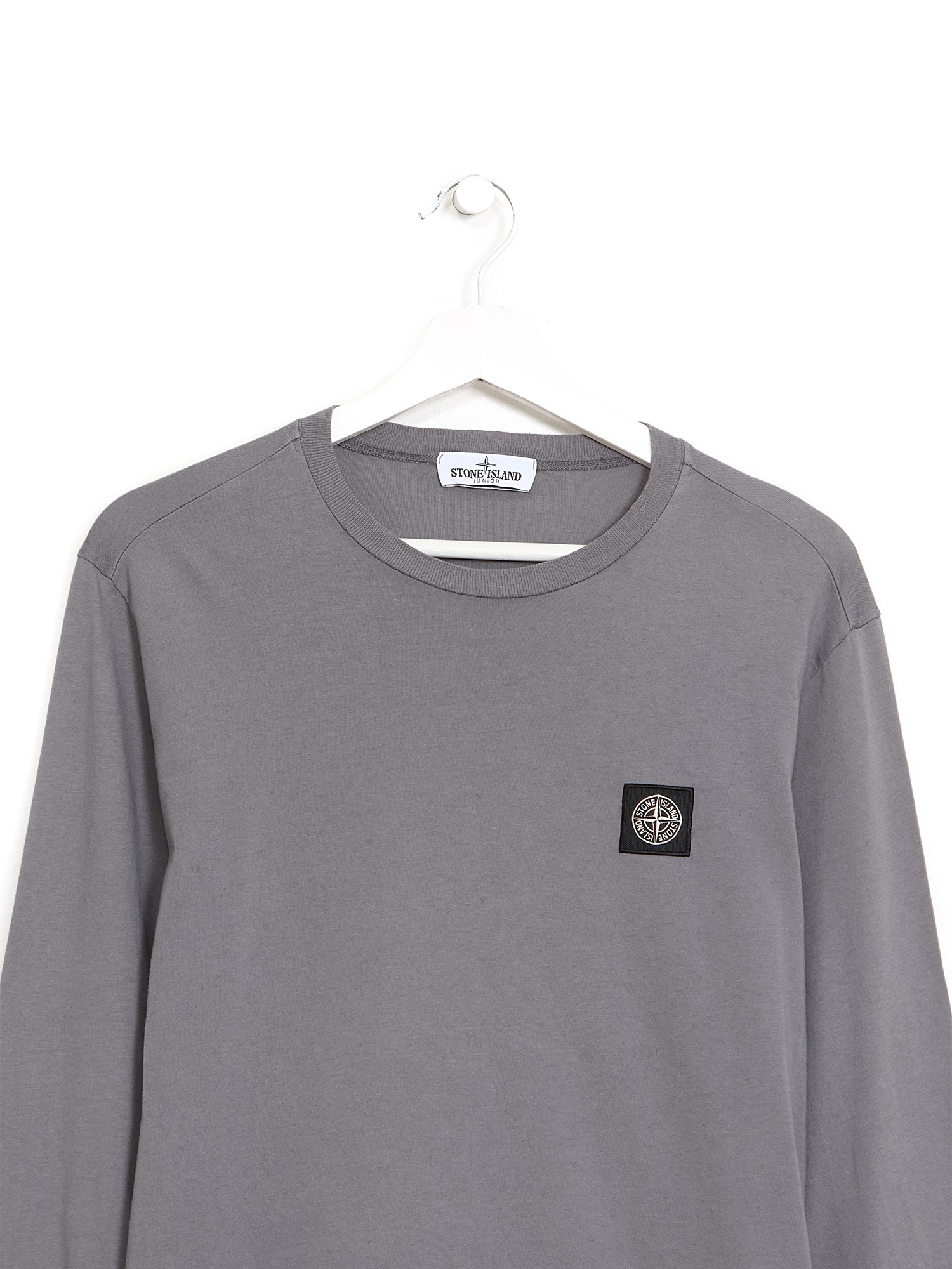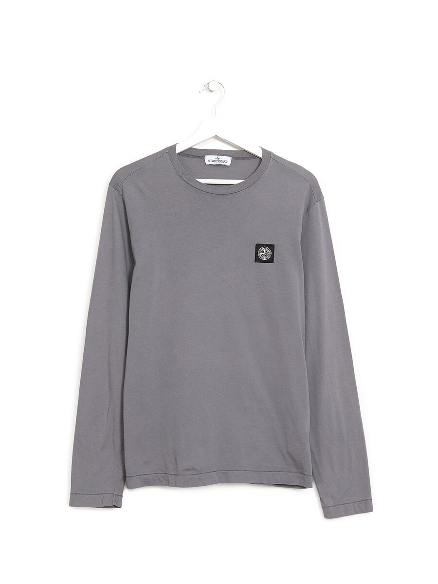 Long-sleeve T-shirt with solid gray design. Crew neck. Logo on chest.