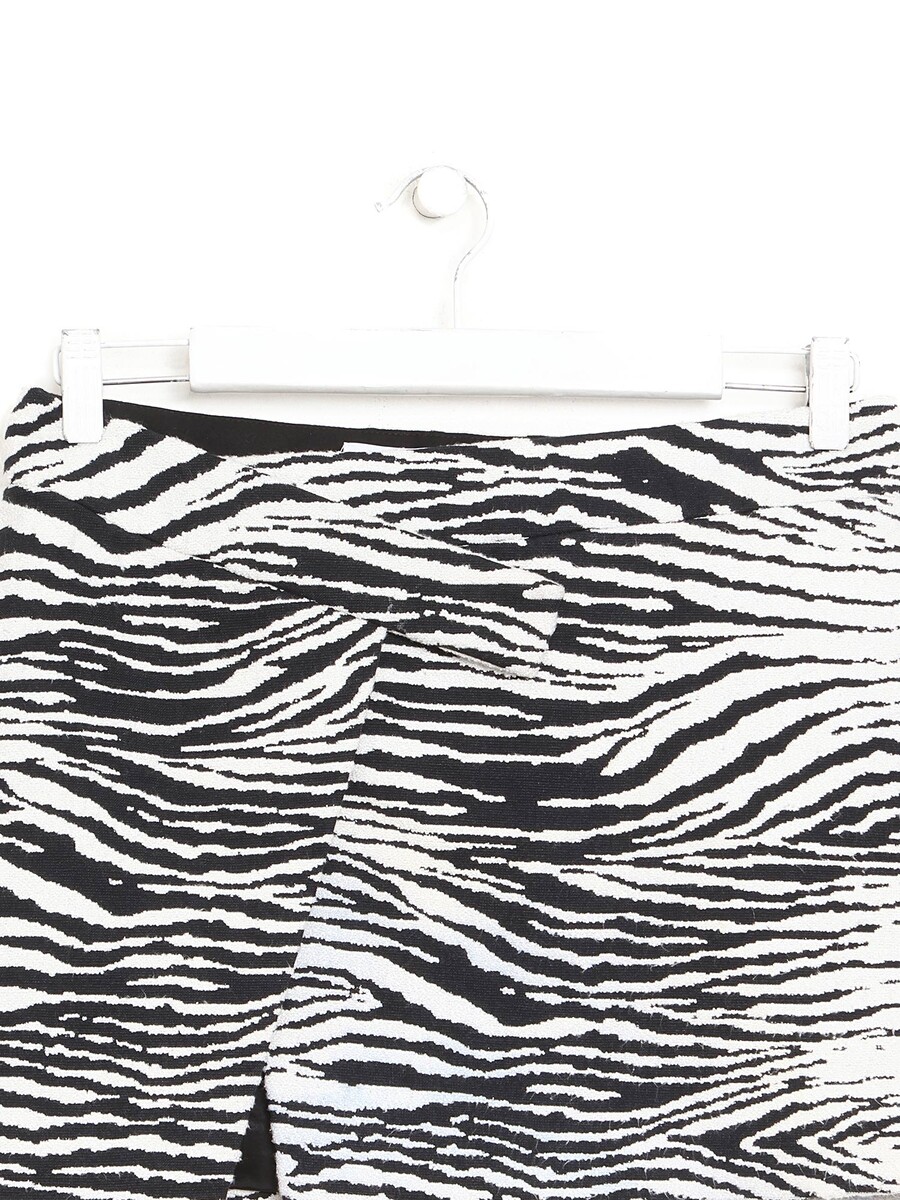 Mini skirt featuring a zebra stripe graphic print in black and white.