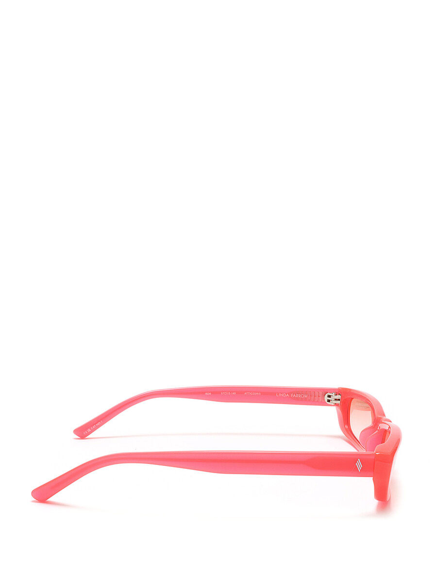 Rectangular pink acetate sunglasses featuring orange lenses. Made in Italy. Slight signs of use and lens scratches.