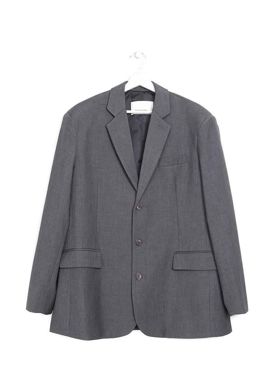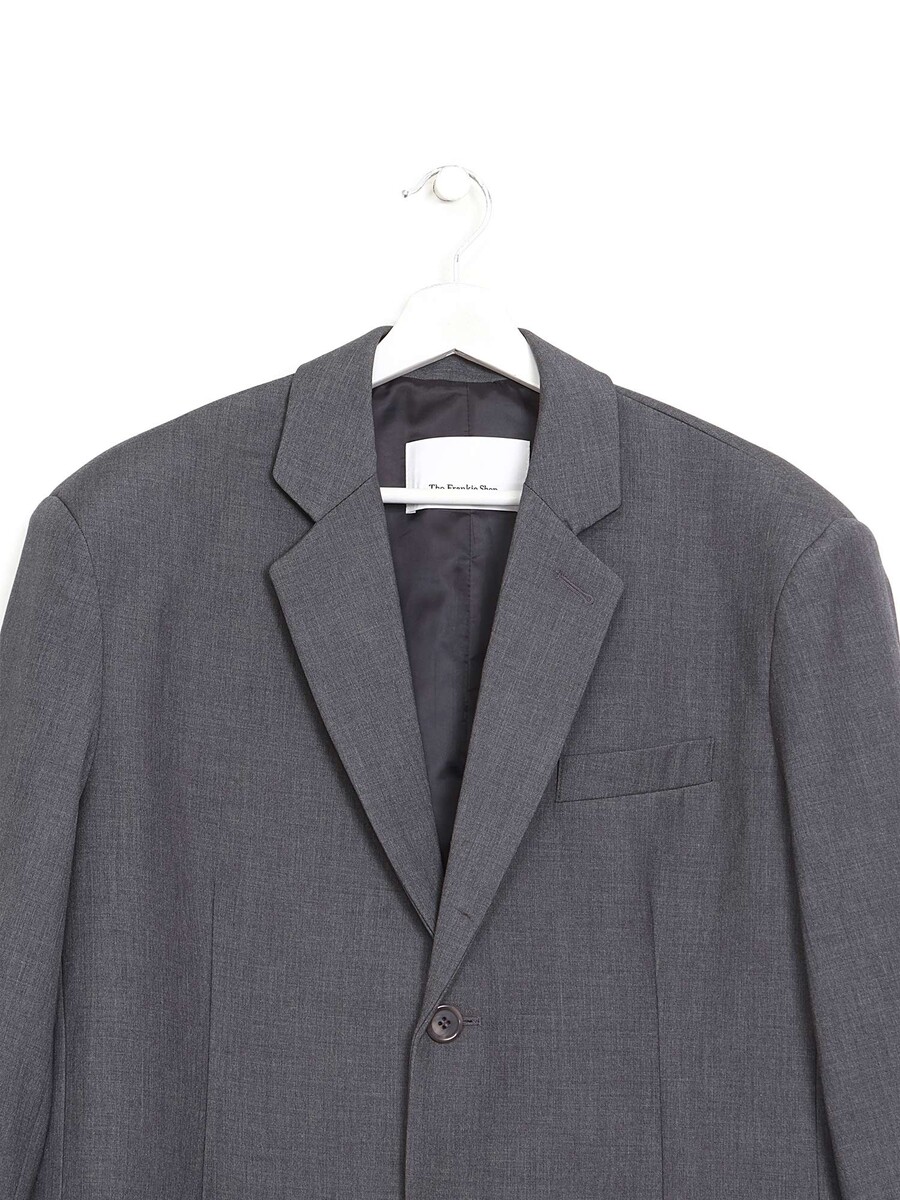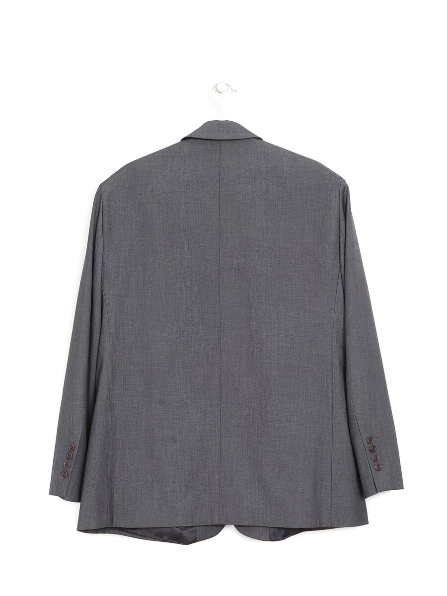Grey oversized blazer with padded shoulders. Notched lapel.