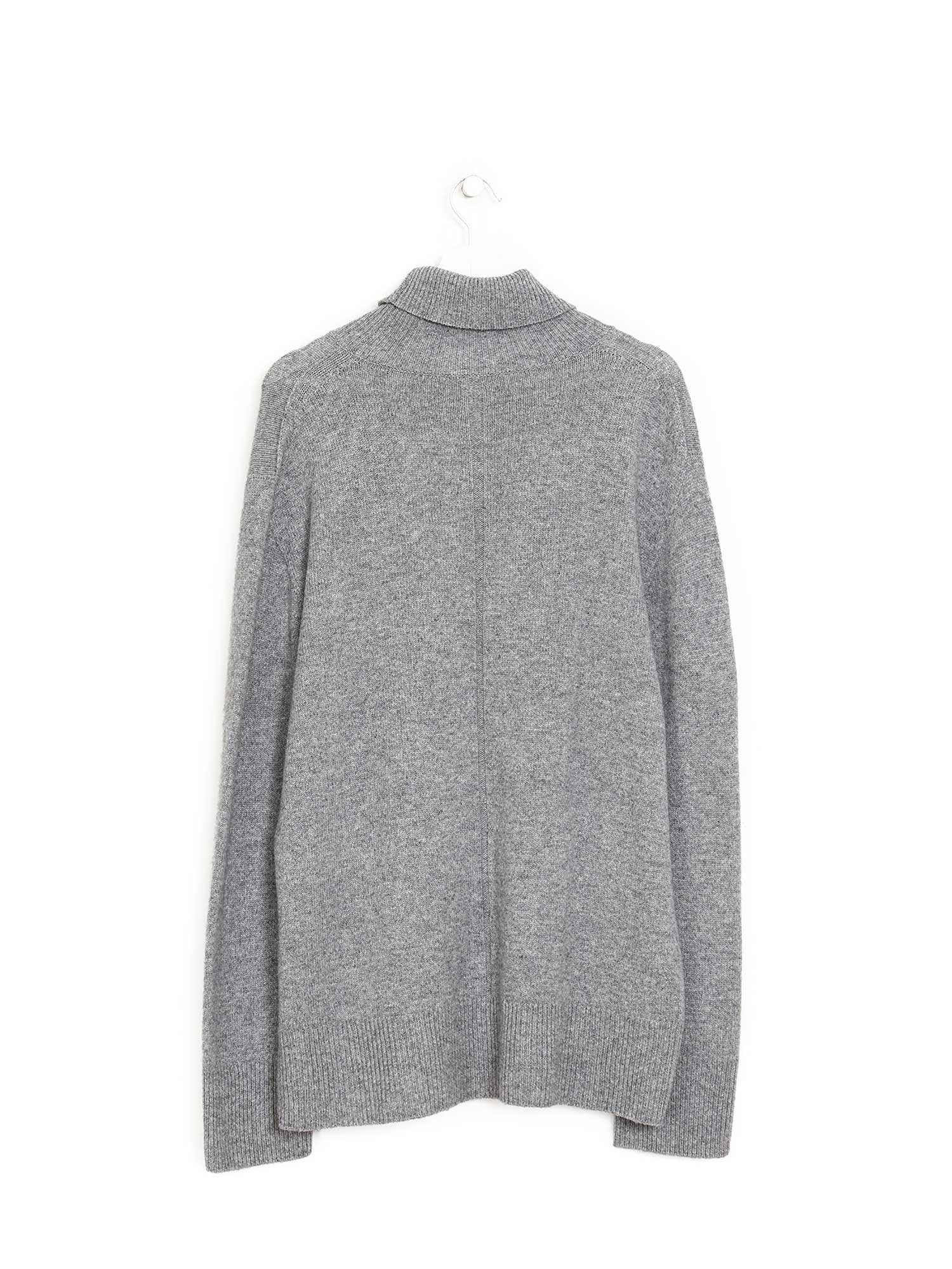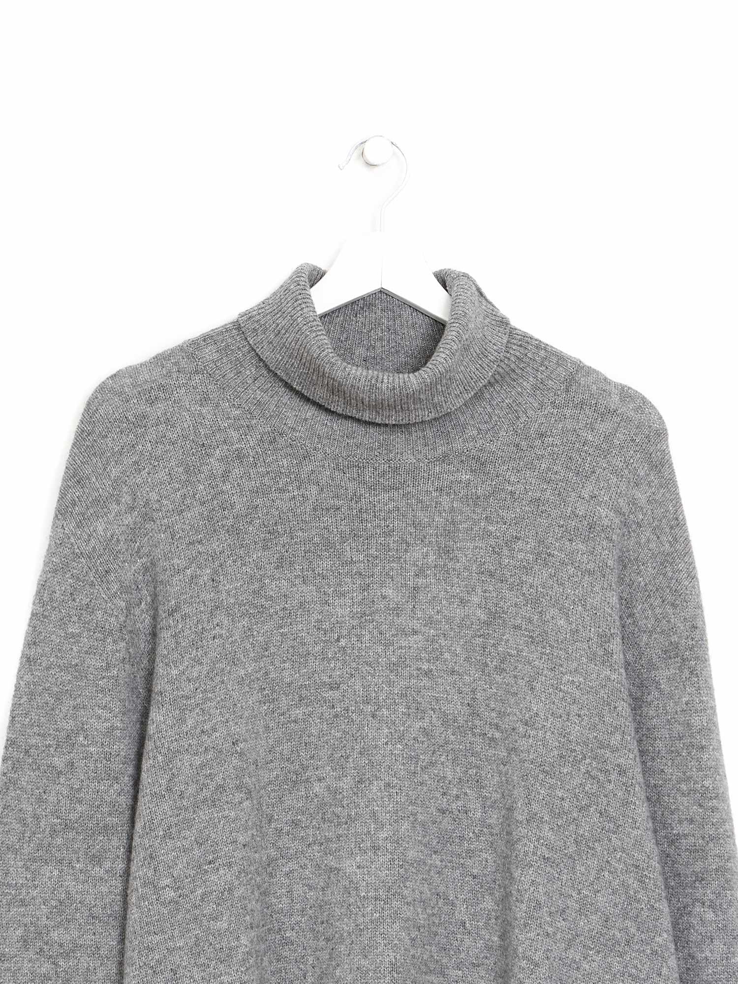 Grey wool and cashmere turtleneck sweater with a soft and luxurious feel.