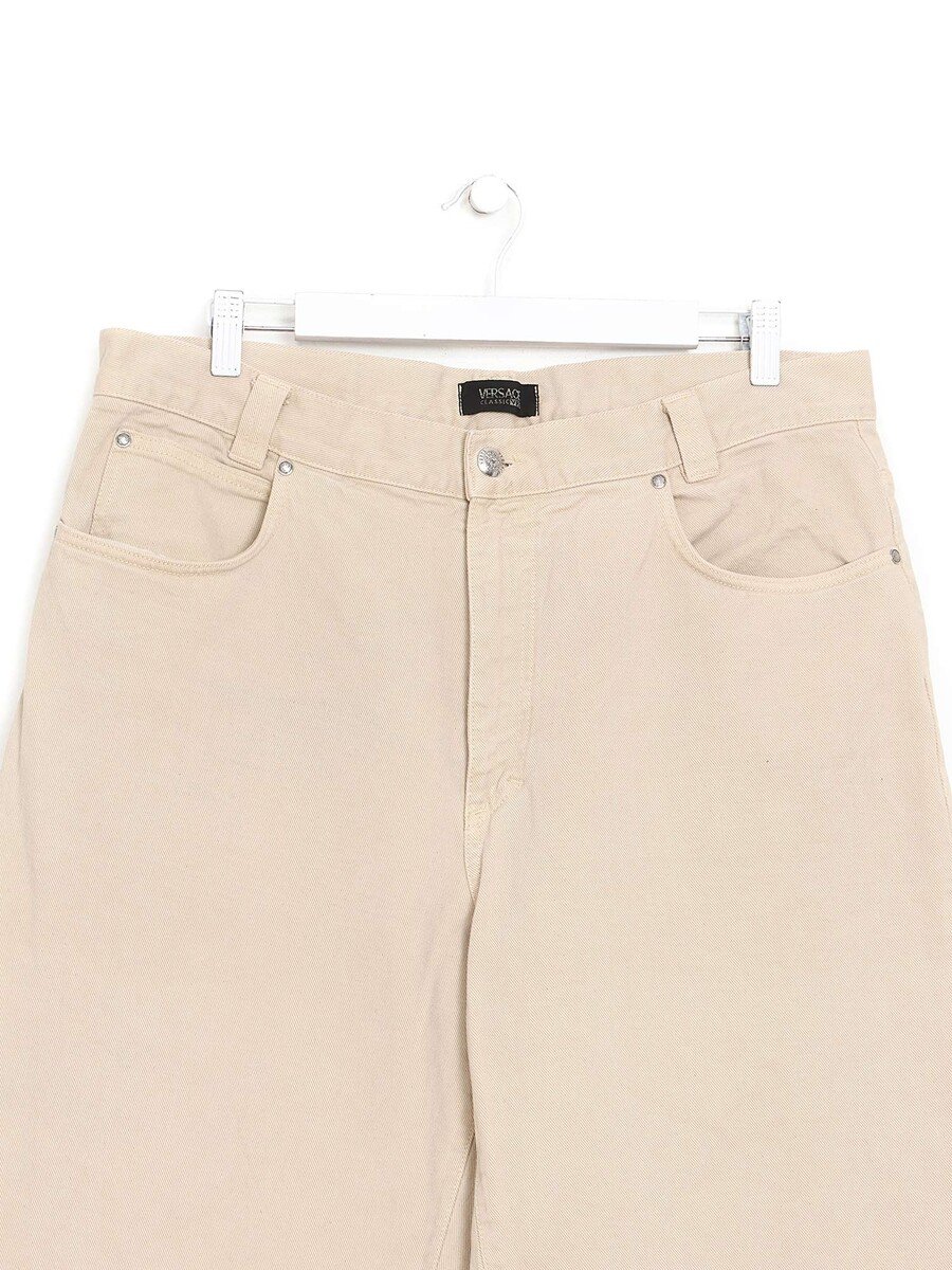 Straight leg denim jeans in off-white with a classic five-pocket style. Belt loops included.