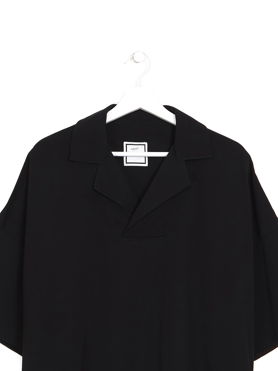 Long sleeve shirt-style blouse in black. Classic shirt collar. Relaxed fit with delicate draping.