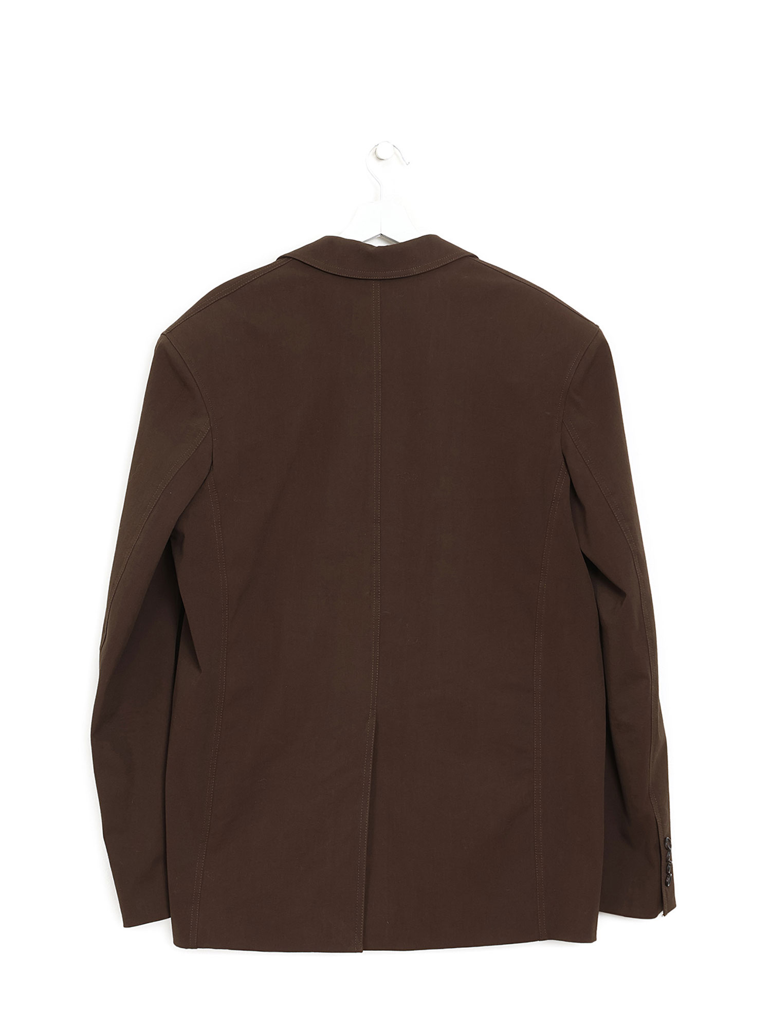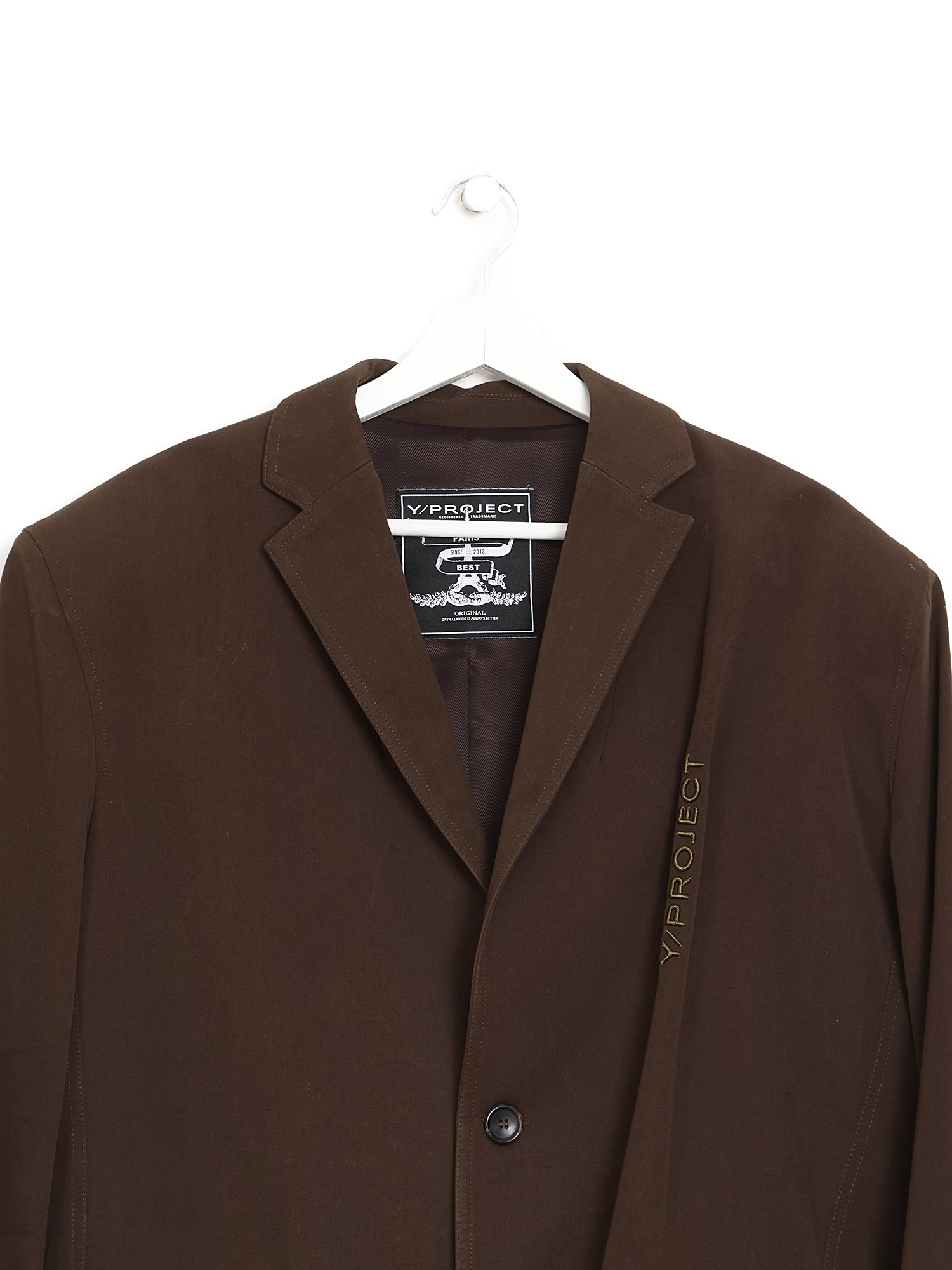 Oversized blazer in dark green. Notch lapels. Embroidered logo at chest. Single-breasted design. Inner pockets.